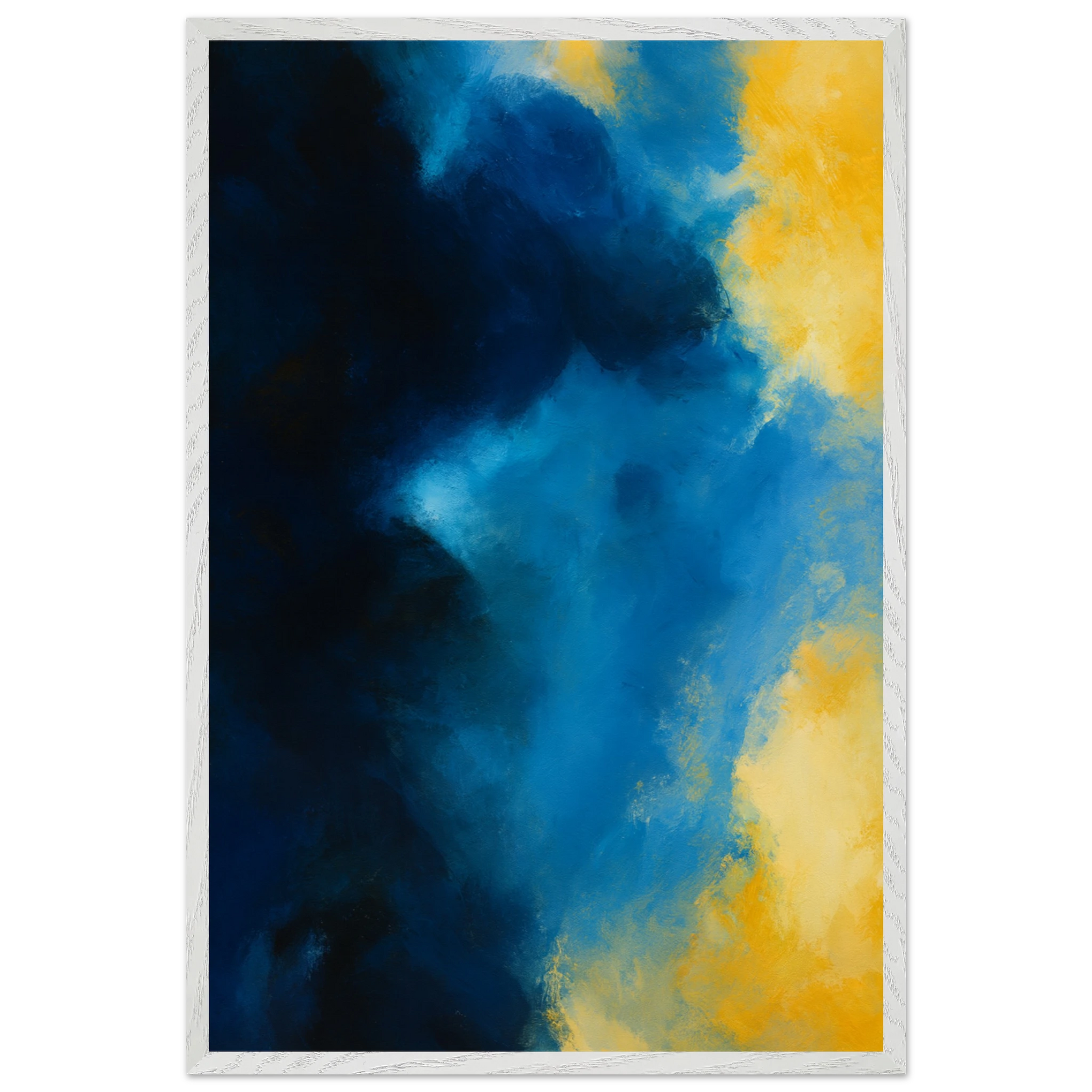 This Wooden Framed Poster presents a Masterpiece of bold contrasts, where deep ocean blues meet luminous golden tones. The artwork symbolizes balance, resilience, and inspiration, creating a powerful emotional connection for its viewer. This gift is for art lovers who cherish color’s ability to evoke memory and elevate ambiance.