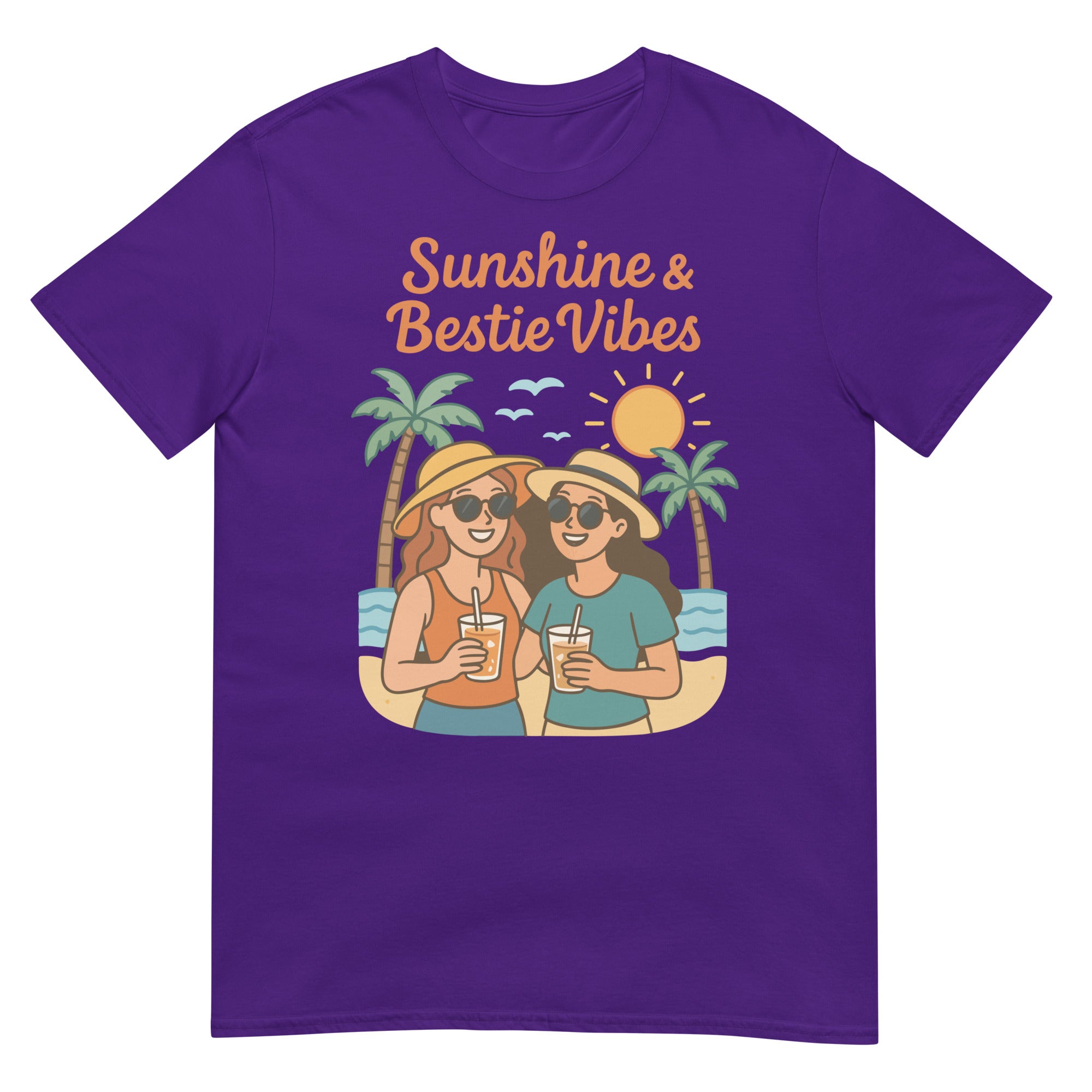 Capture the magic of carefree summer days and soul-deep friendship with this beautifully illustrated Giftomory T-shirt. The design features two best friends enjoying iced drinks under the sun, surrounded by palm trees, golden sands, and ocean waves. With warm tones and joyful energy, it’s a wearable reminder of those picture-perfect moments. This gift is for that one person who brings sunshine and laughter into your life—your ride-or-die, your forever bestie.