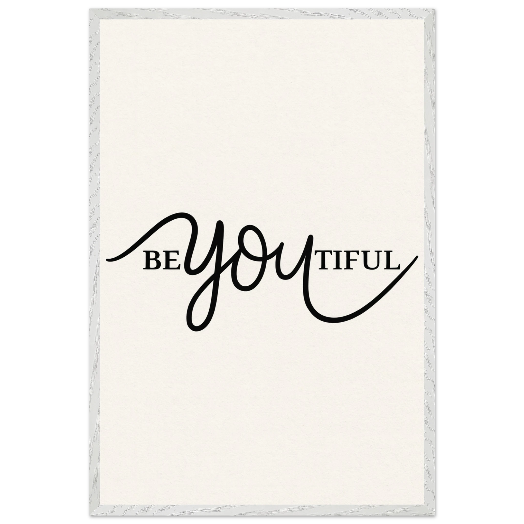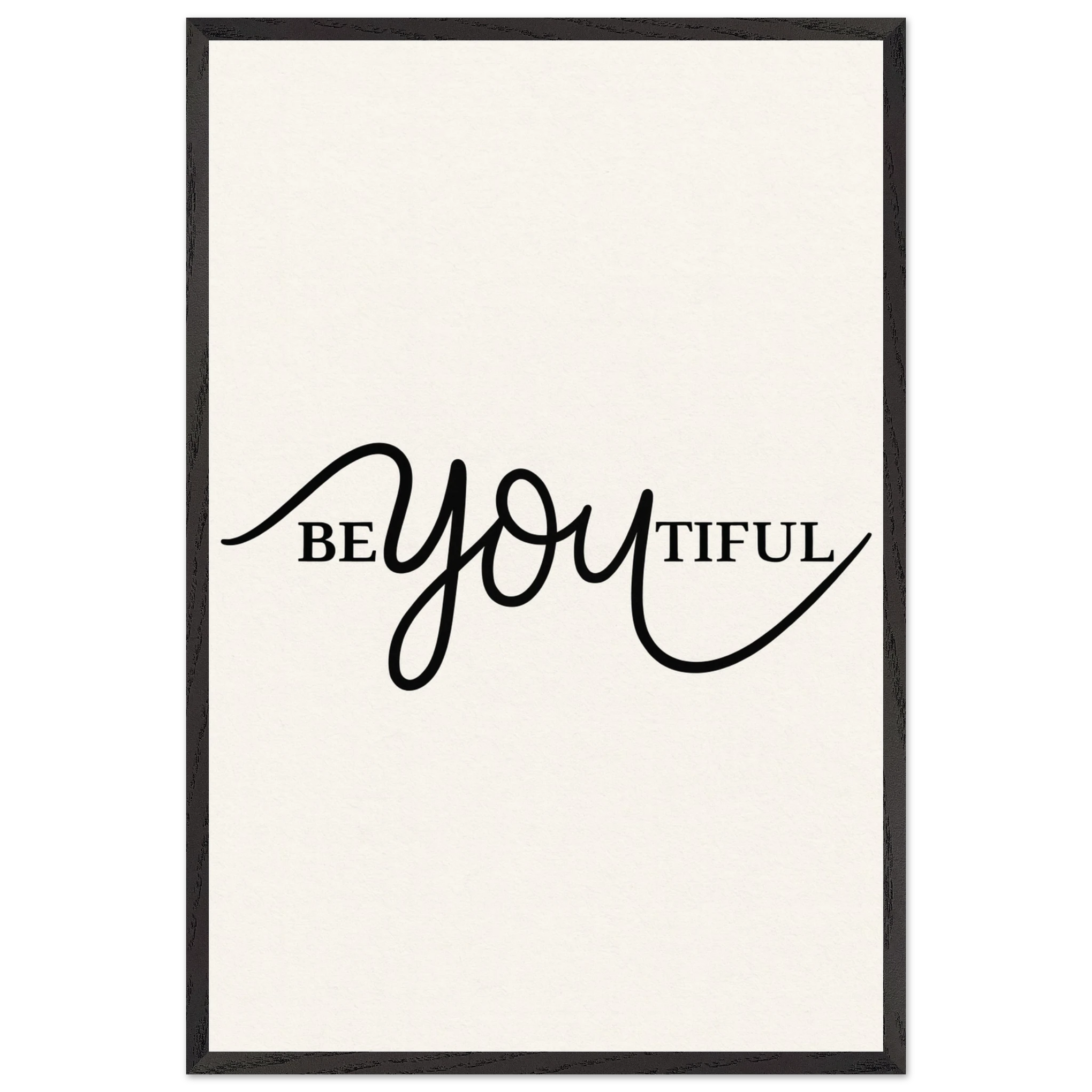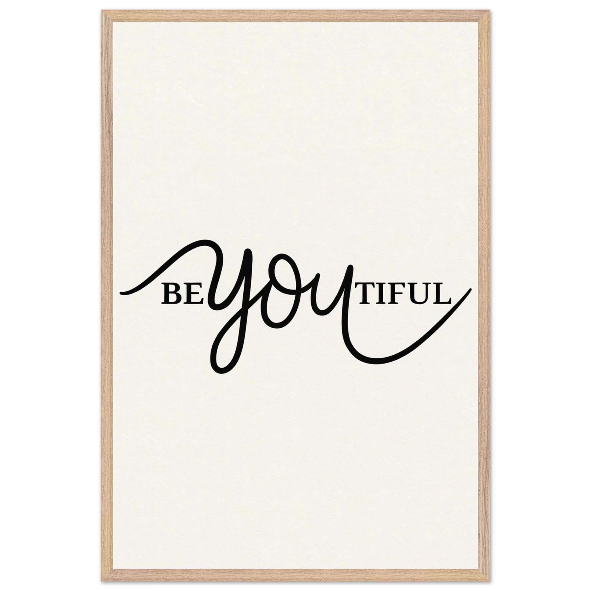 This elegant BeYOUtiful Wooden Framed Poster is a gentle affirmation of self-love and individuality. With its graceful black typography on a warm ivory backdrop, it brightens any space with calm sophistication. This gift is for anyone who deserves to be reminded of their inner beauty — a perfect fusion of Gift + Memory, reflecting love, confidence, and timeless simplicity.