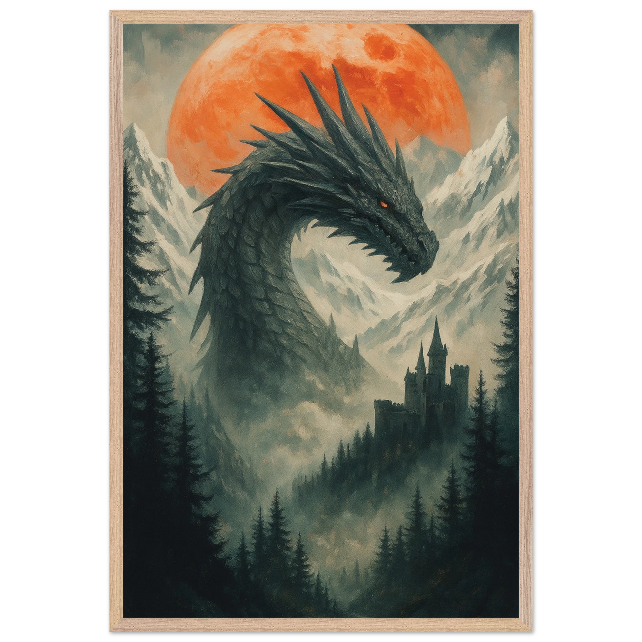This gift is for those who believe in power, mystery, and imagination. The artwork portrays a majestic dragon towering over misty mountains under a crimson moon — a symbol of strength and protection. Its dramatic tones and textures command attention, turning any space into an epic scene of fantasy storytelling. Giftomory’s Gift + Memory brings legends to life.
