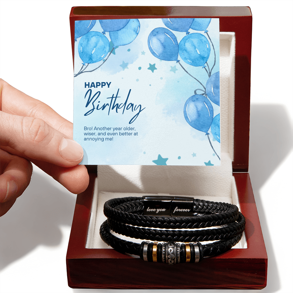 This design is for best friends—and for the brother who knows just how to make you laugh and lose your patience all in one breath. A floating celebration of blue balloons fills the scene with lightness while the scattered stars and watercolor textures bring a dreamy, nostalgic charm. The cheeky birthday message—“another year older, wiser, and better at annoying me!”—adds a personal and playful twist that only siblings can relate to. True to Giftomory’s promise of blending gift and memory, this design transforms affection and humor into lasting visual joy.