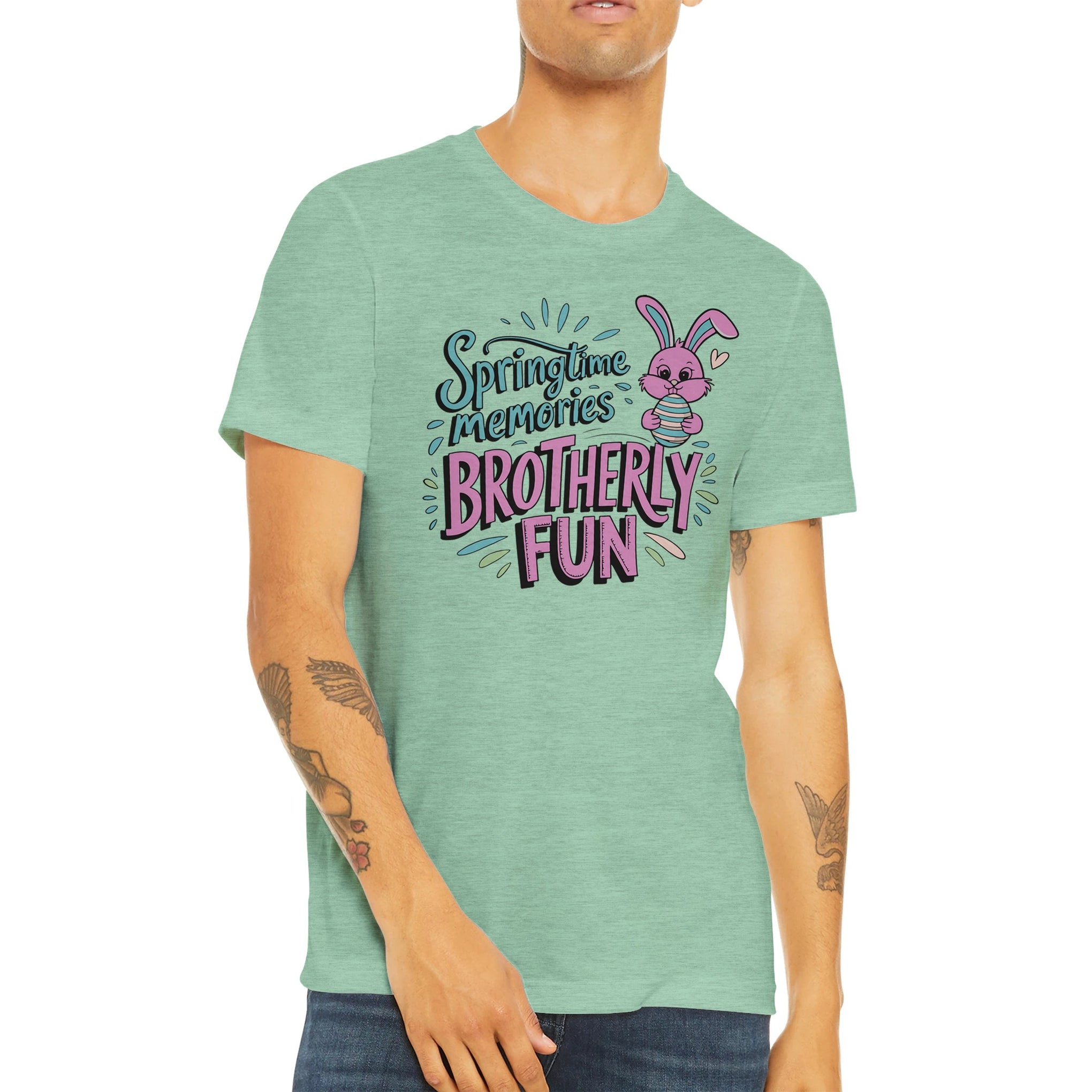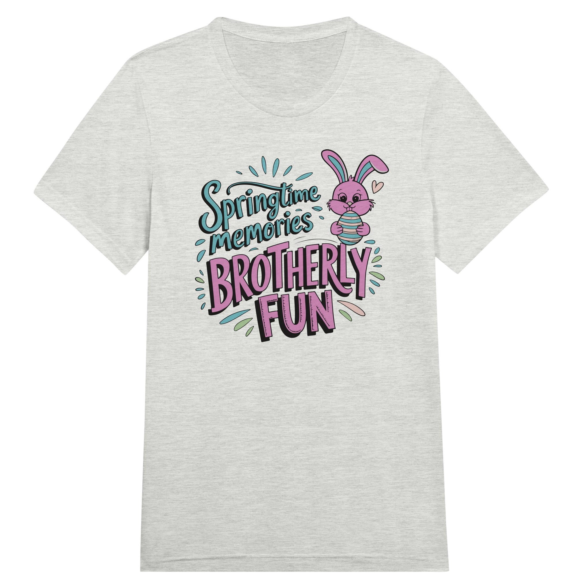 Easter is all about family, joy, and creating memories, and this Brotherly Fun T-shirt is the perfect way to celebrate the season! Featuring a whimsical bunny holding an Easter egg, bold typography, and pastel spring colors, this design radiates warmth and happiness. The artistic blend of soft blue, pink, and green shades enhances the festive mood, making it an ideal choice for Easter egg hunts, family gatherings, and heartfelt gifting. Inspired by Giftomory’s philosophy of merging "Gift" and "Memory," this T-shirt ensures that every Easter celebration with your brother is filled with fun and nostalgia.