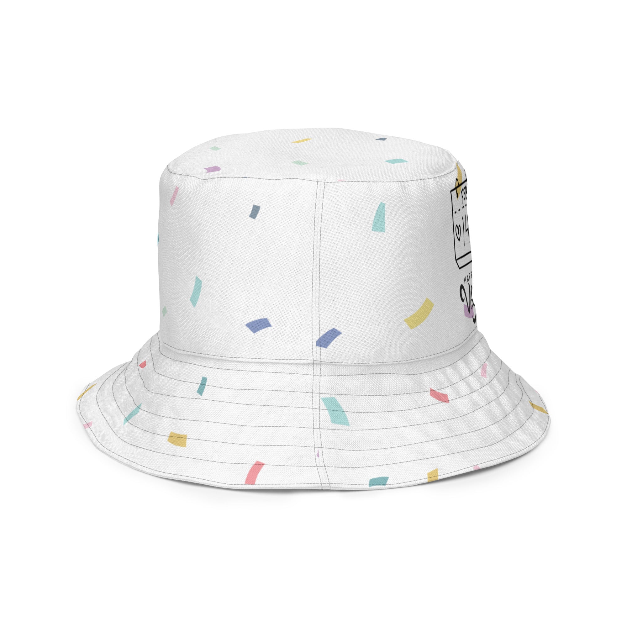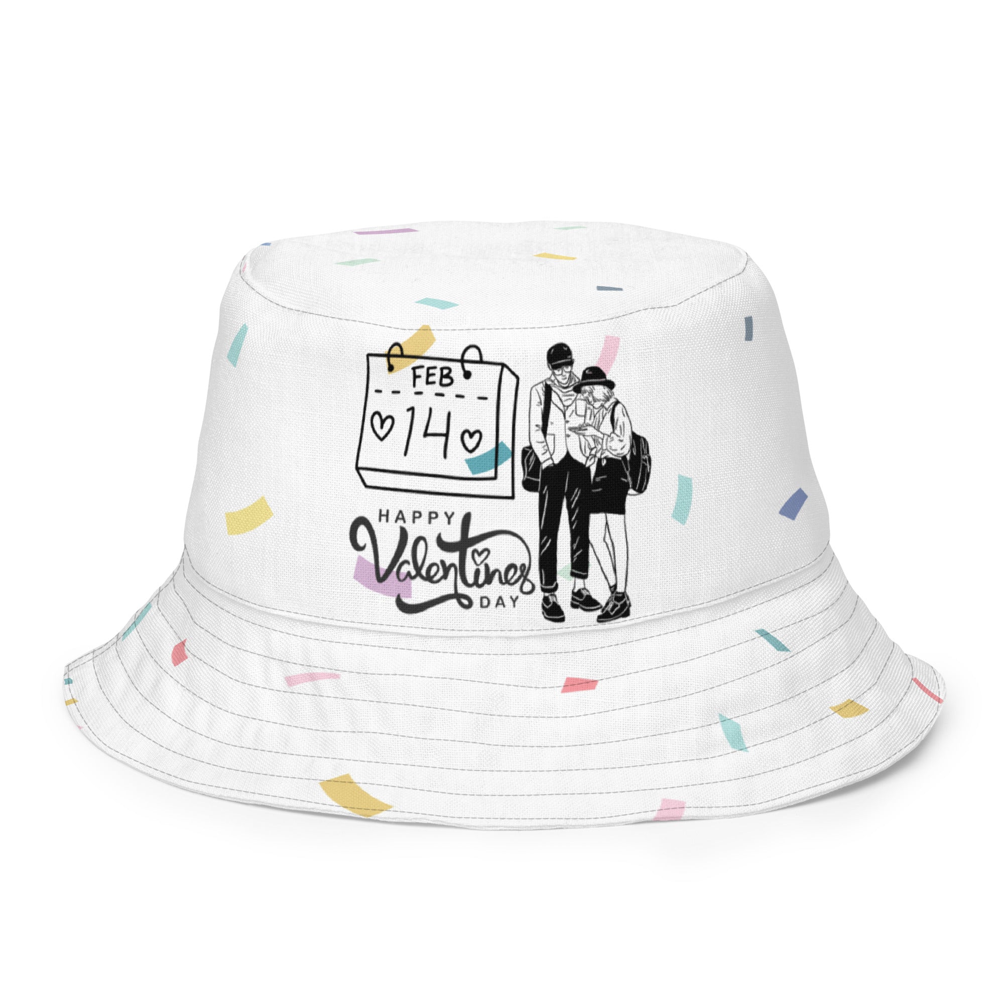 Celebrate Valentine’s Day with a touch of sophistication through Giftomory’s reversible bucket hat. Designed with a minimalist “Happy Valentine’s Day” script, this hat is perfect for wives and girlfriends who appreciate timeless style. Its monochromatic black-on-black theme offers a versatile, sleek look that suits any occasion, from casual outings to romantic celebrations. This hat is more than just an accessory; it’s a meaningful expression of your affection.