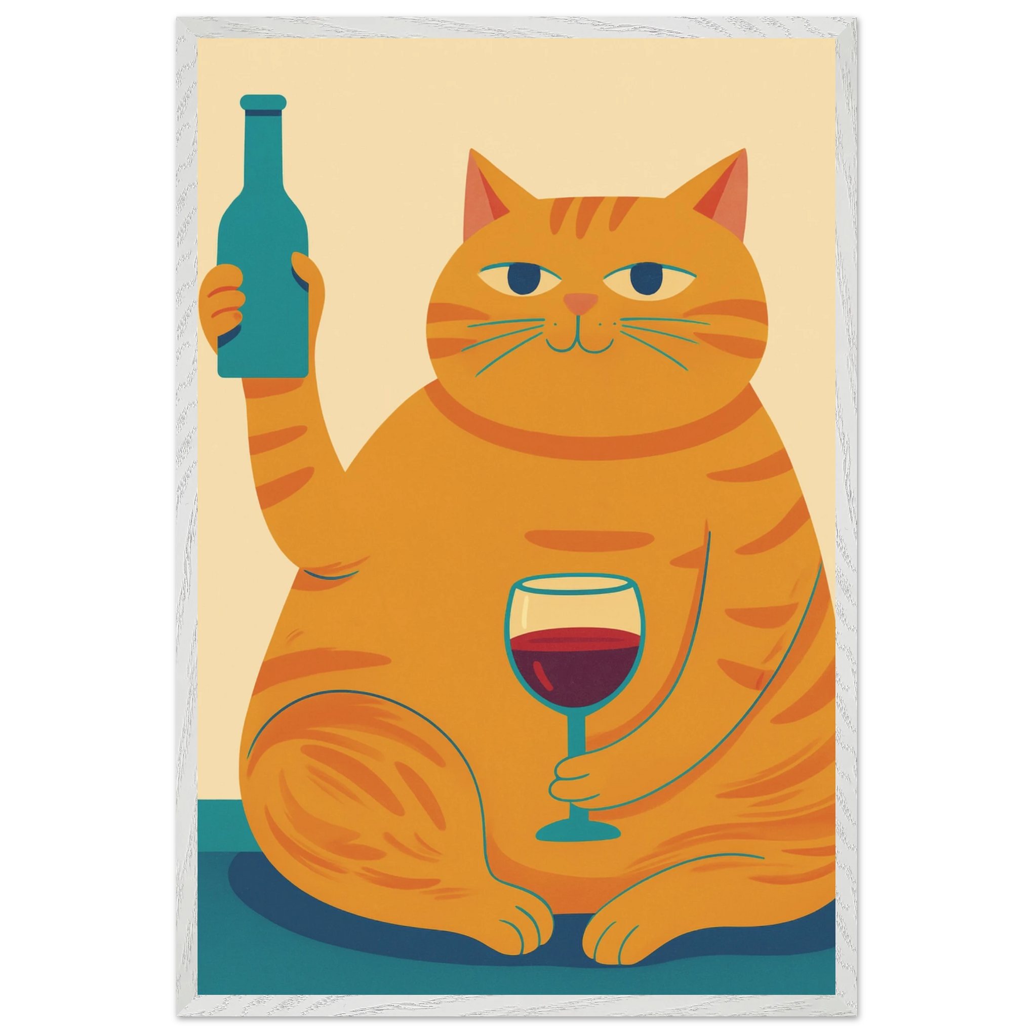 Say cheers with charm. This framed poster stars a plump orange tabby confidently toasting with wine and a bottle in hand—perfect for celebrating cozy nights and shared laughs. Bold colors, clean lines, and feline sass bring warmth to your wall. This gift is for wine lovers, cat enthusiasts, and anyone who appreciates a dose of happy hour humor—crafted by Giftomory.