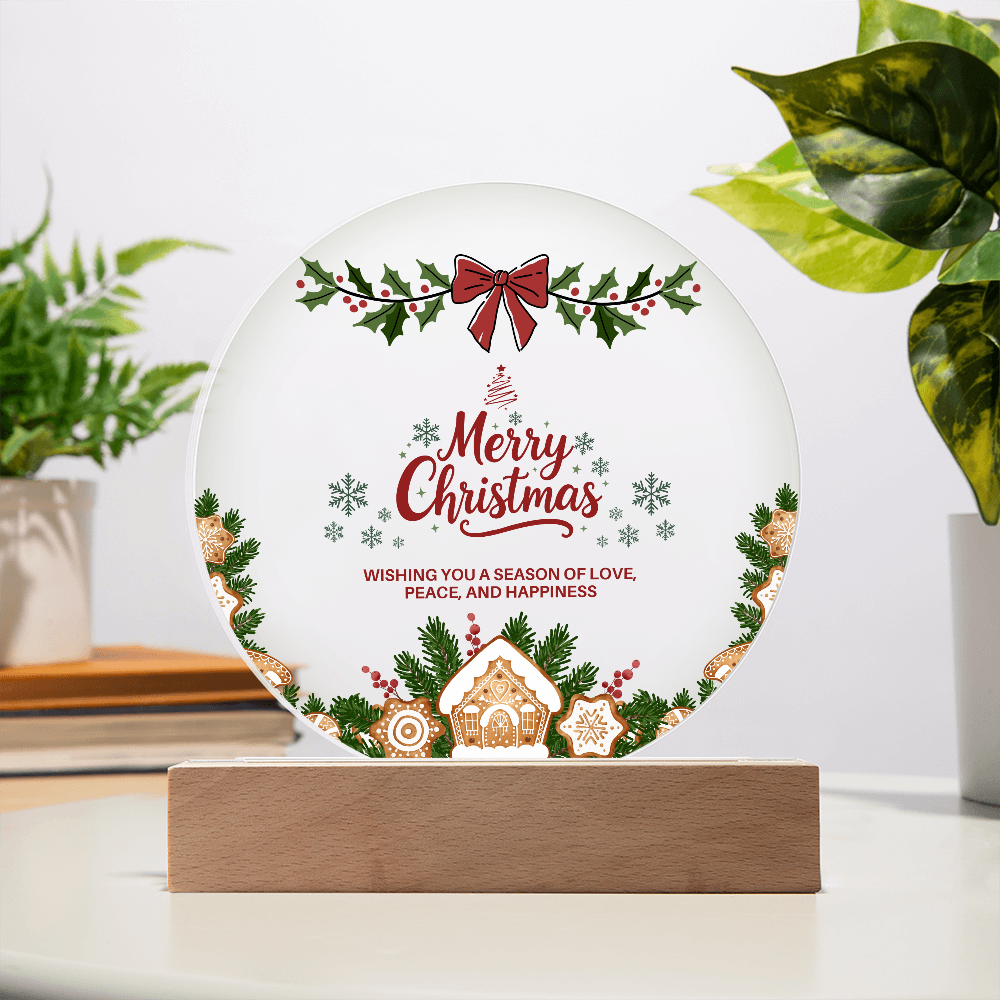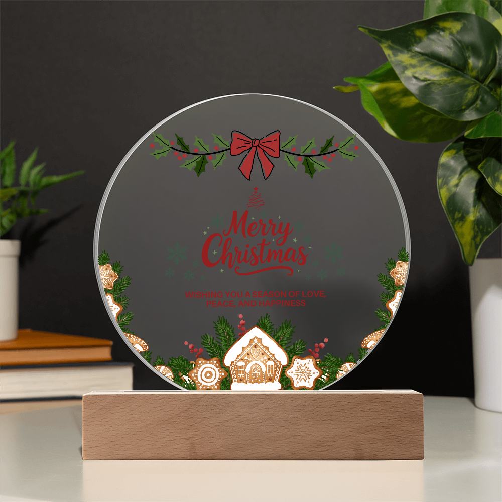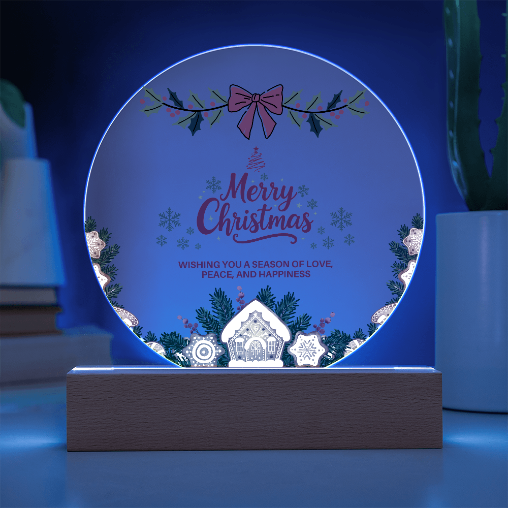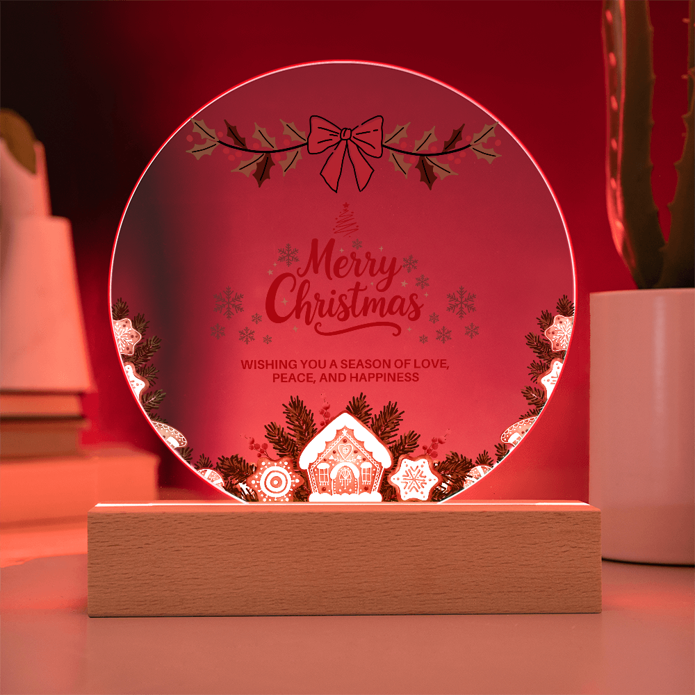 This gift is for those who find happiness in Christmas warmth and laughter. The Santa & Reindeer Circular Acrylic Plaque by Giftomory brings together soft red tones, snowy pines, and cheerful companionship — symbolizing joy, togetherness, and peace. The glowing LED base enhances the festive mood, turning your home into a radiant reflection of Gift + Memory.