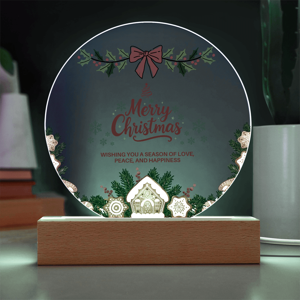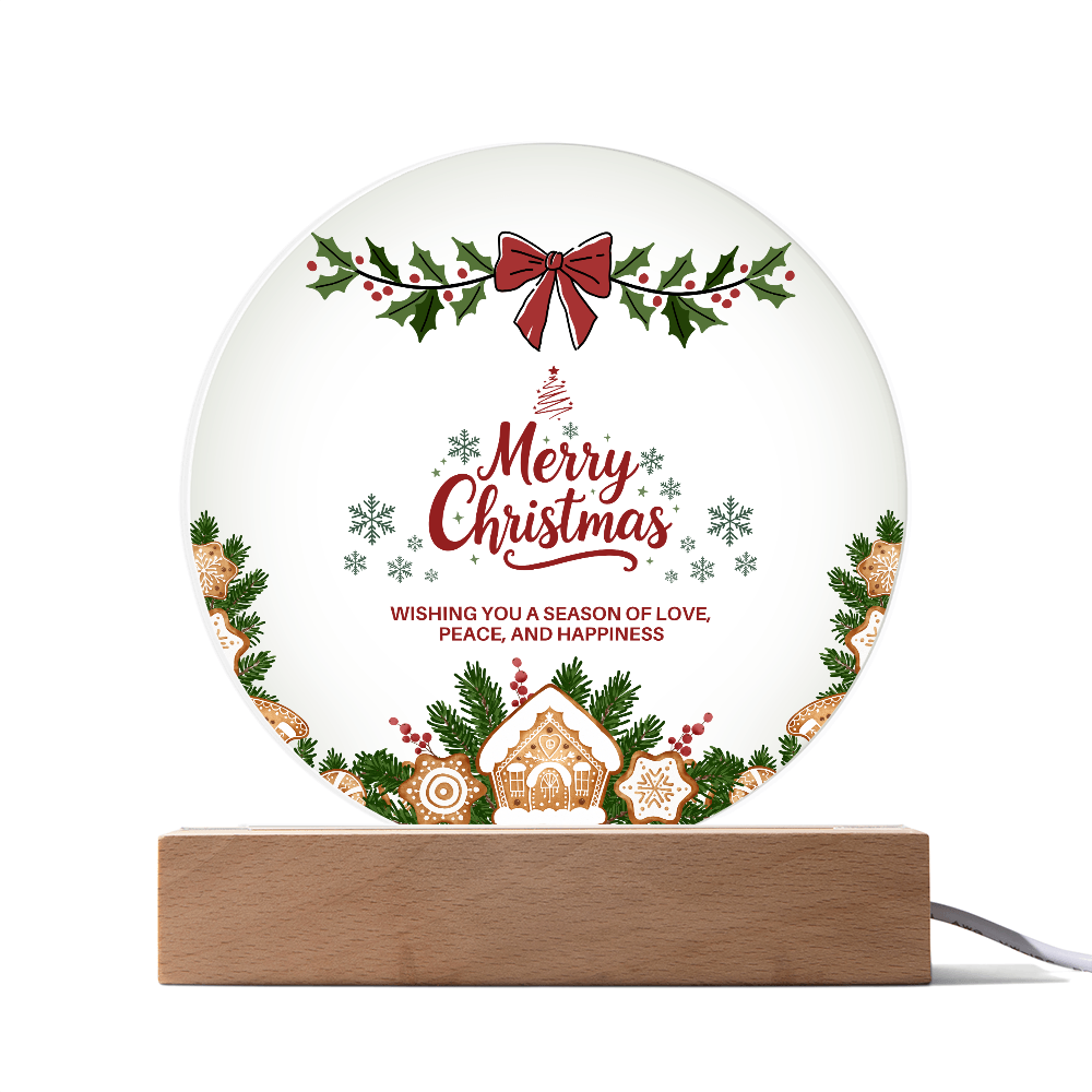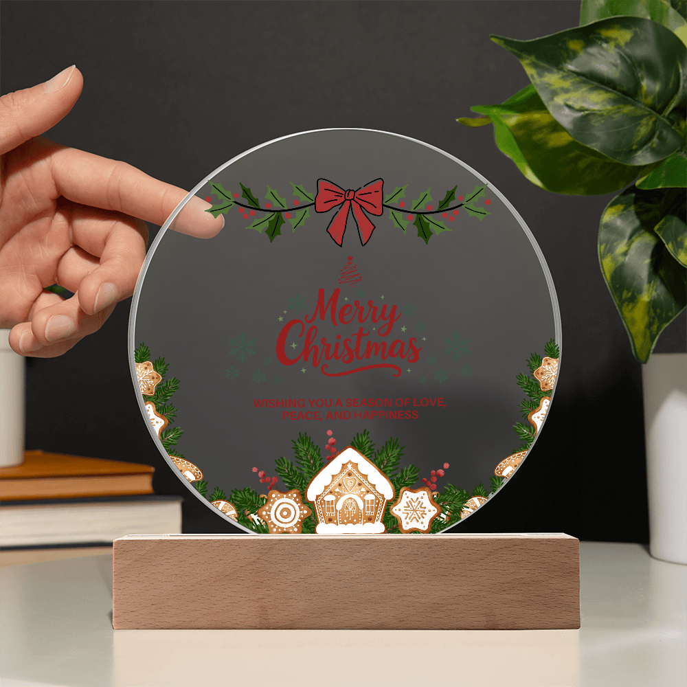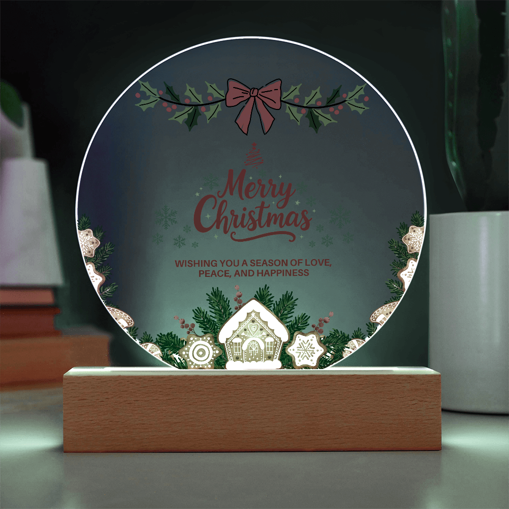 This gift is for those who find happiness in Christmas warmth and laughter. The Santa & Reindeer Circular Acrylic Plaque by Giftomory brings together soft red tones, snowy pines, and cheerful companionship — symbolizing joy, togetherness, and peace. The glowing LED base enhances the festive mood, turning your home into a radiant reflection of Gift + Memory.