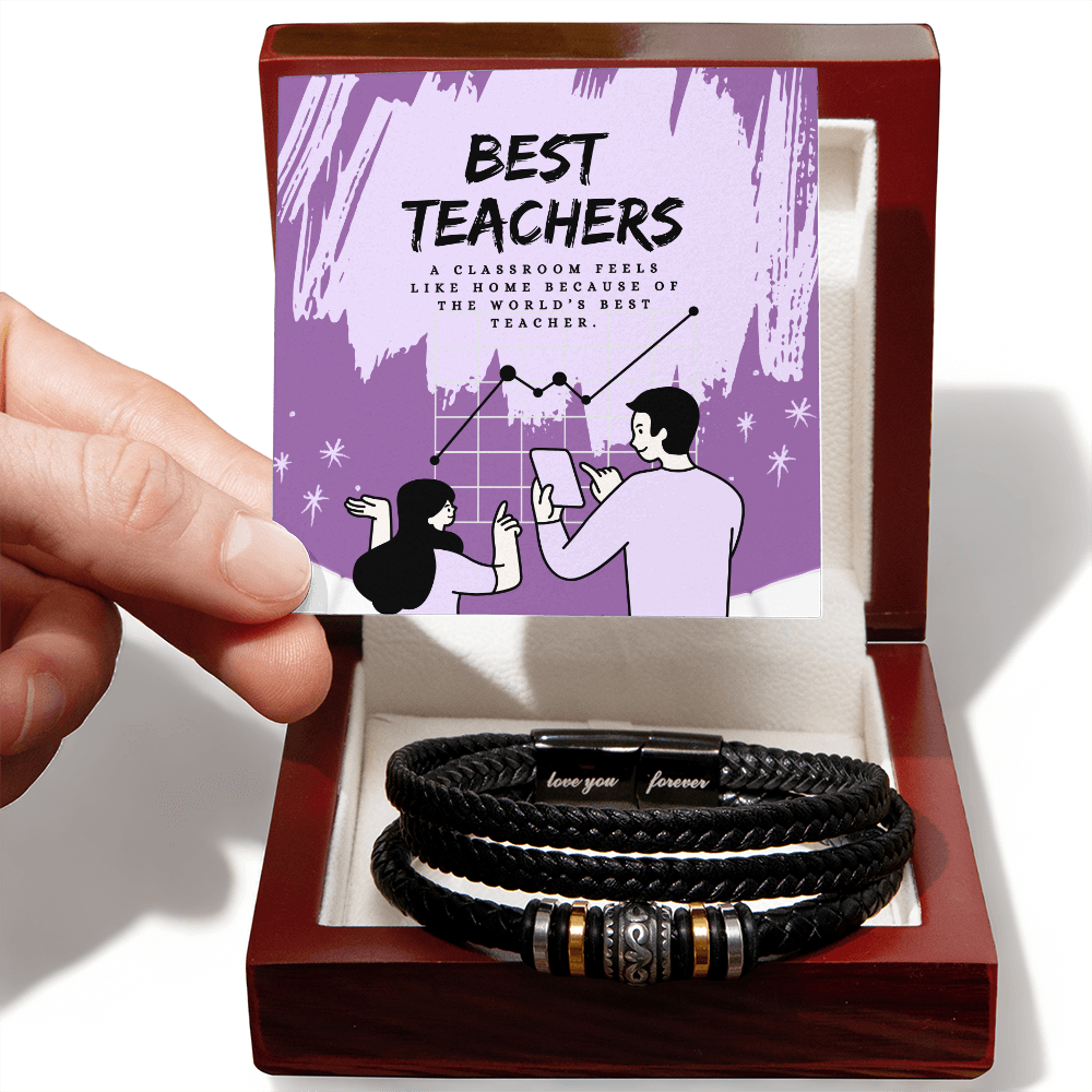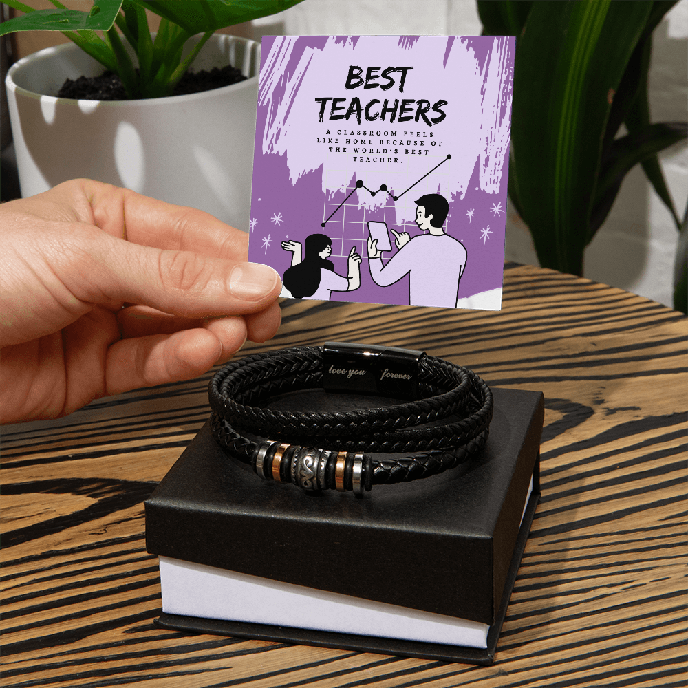 This design is for teachers—the mentors who make classrooms feel like home. Featuring a dynamic purple background with expressive brush strokes and a teacher-student illustration, the artwork evokes warmth, trust, and learning. The quote, “A classroom feels like home because of the world’s best teacher,” reinforces the emotional connection that students carry forever. Ideal for celebrating Teacher’s Day, retirements, or end-of-year thank-yous, this bracelet symbolizes the role teachers play in shaping lives. At Giftomory, we believe every Gift should become a Memory, and this piece beautifully brings that belief to life.