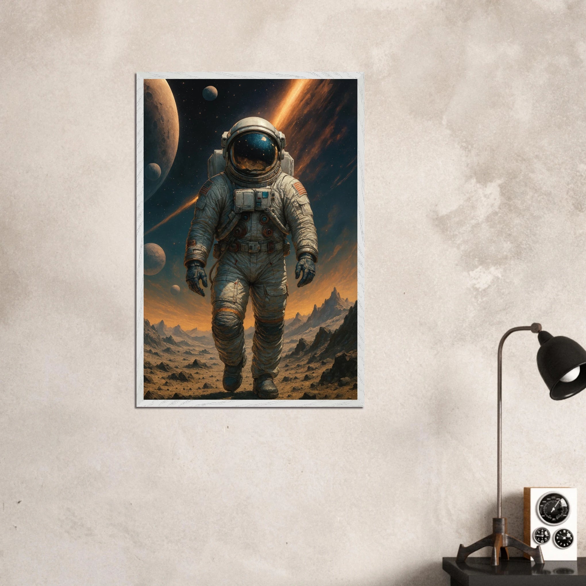 This gift is for those who dream beyond the horizon — the thinkers, explorers, and believers in endless possibilities. The artwork captures an astronaut walking across an alien landscape beneath glowing planets, symbolizing ambition and the human spirit. Bring the universe to your walls with Giftomory’s essence — where every Gift + Memory celebrates imagination.