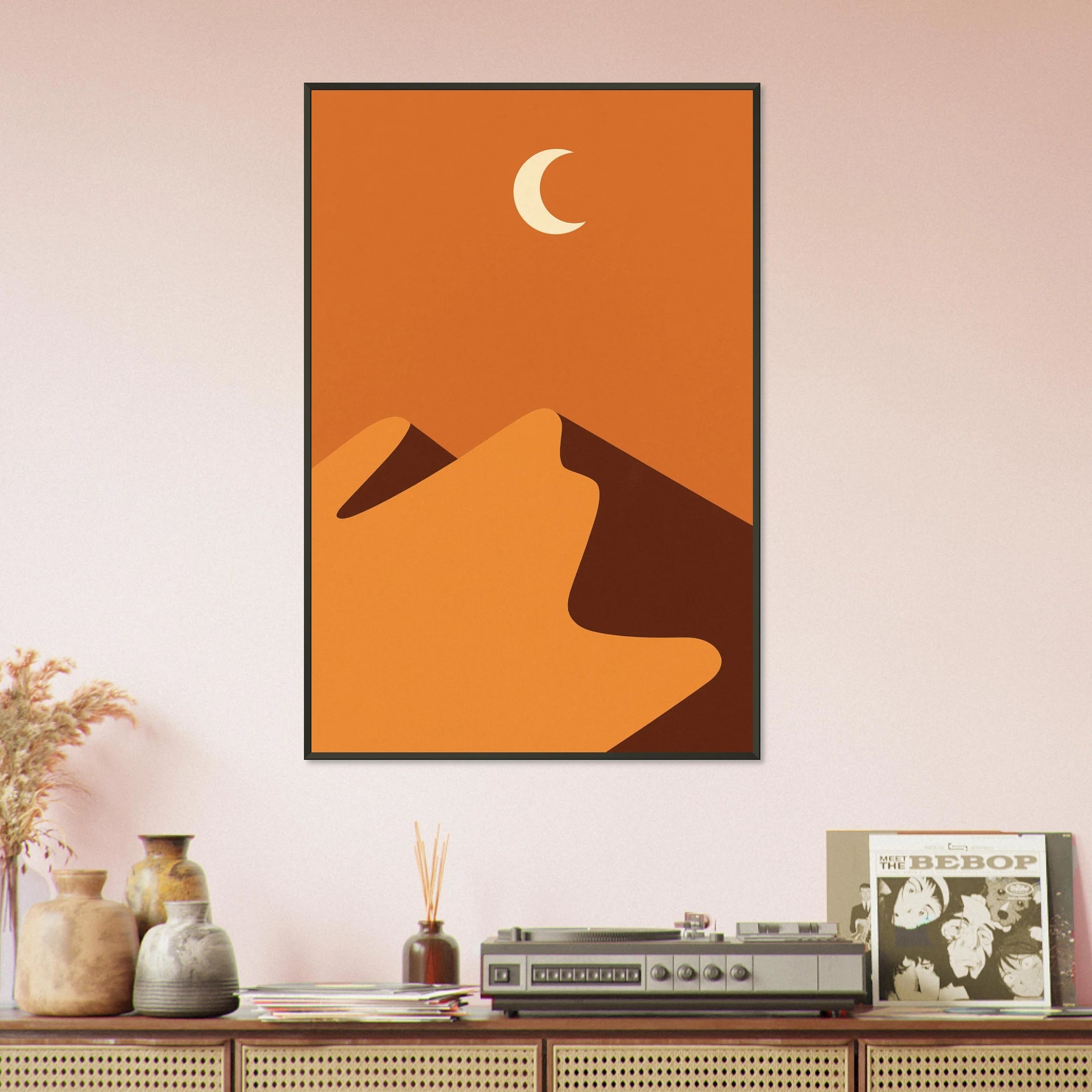 The Desert Moon – Metal Framed Poster channels the peaceful spirit of the night desert. Curving dunes and a soft crescent moon invite reflection and warmth, creating a balance between simplicity and depth. This gift is for those who find calm in stillness—where Gift + Memory echo in golden silence and poetic form.