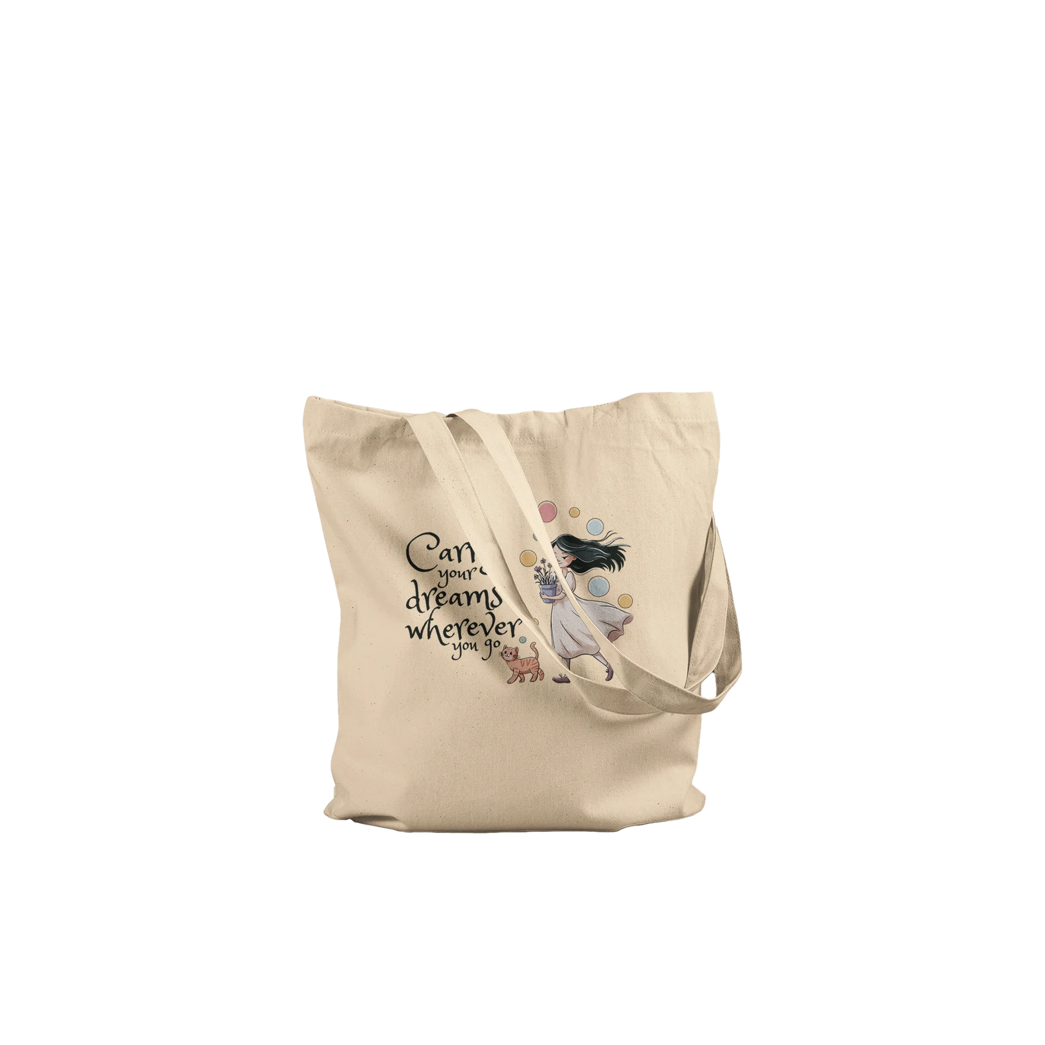 This gift is for the person who carries hope in her heart and creativity in her soul. The "Carry Your Dreams" Premium Tote Bag features a serene girl holding flowers, accompanied by a playful cat and surrounded by pastel bubbles. Its poetic message and gentle flow evoke a sense of freedom and inner joy—an everyday reminder that your dreams deserve to travel with you. At Giftomory, where gifts become memories, this design turns an ordinary tote into a wearable inspiration.