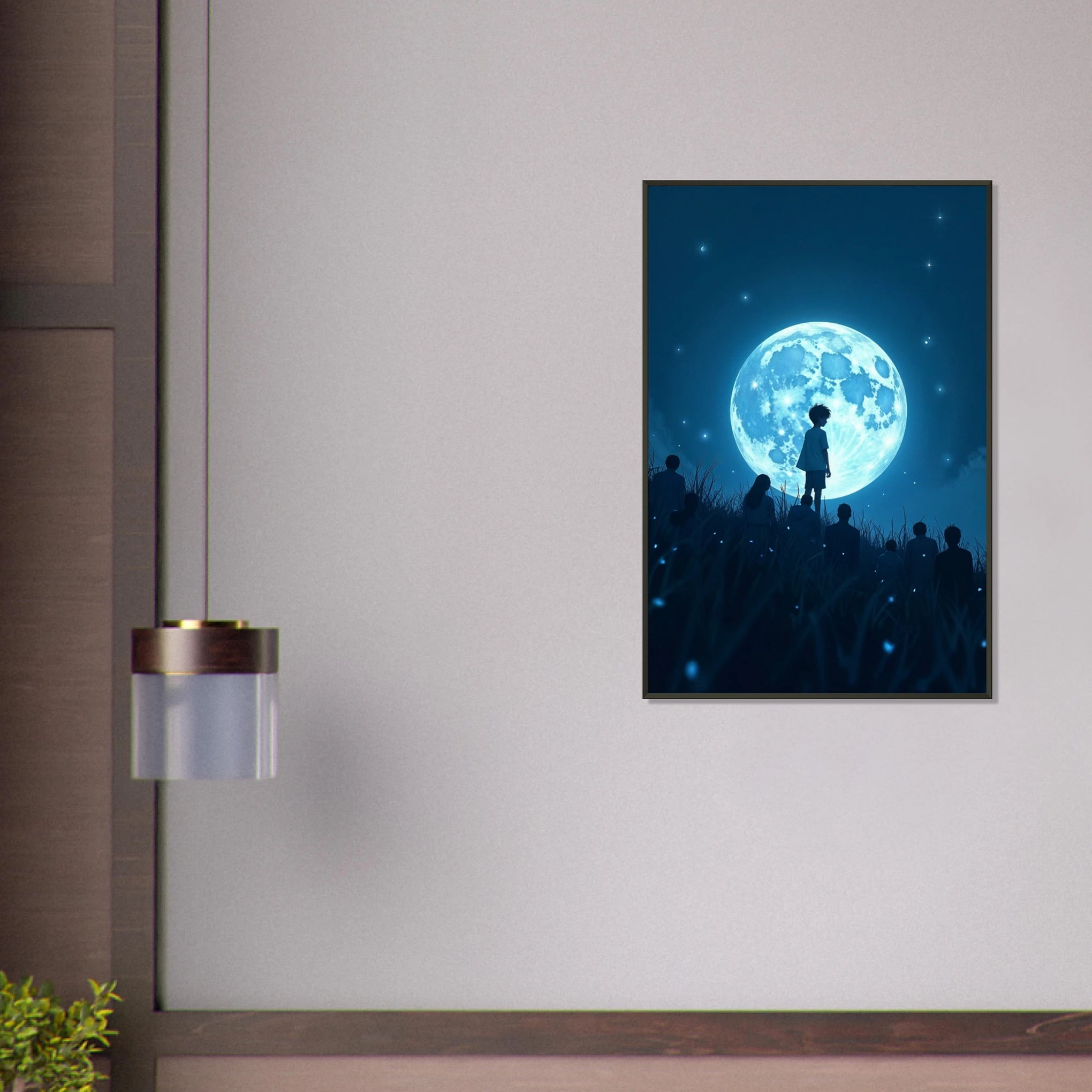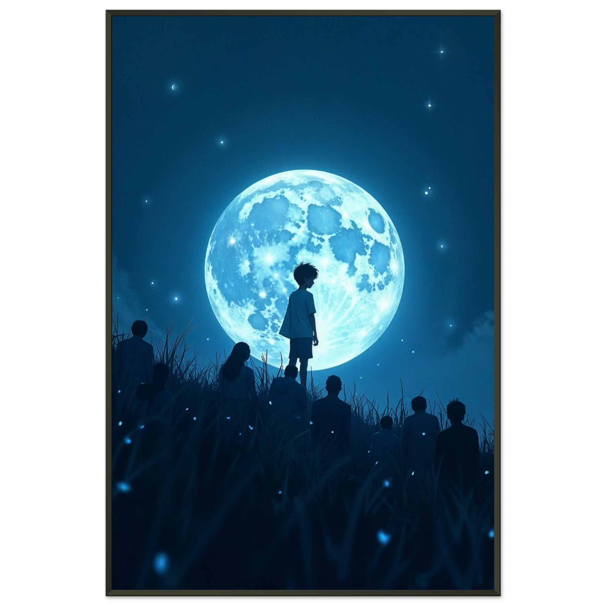 This gift is for starry-eyed dreamers, children at heart, and those who believe in the magic of the universe. Featuring a luminous moon and silhouettes of children gazing upward, this Classic Matte Paper Metal Framed Poster invites introspection, imagination, and awe. A beautiful embodiment of Giftomory’s promise—gift and memory fused in one celestial moment.