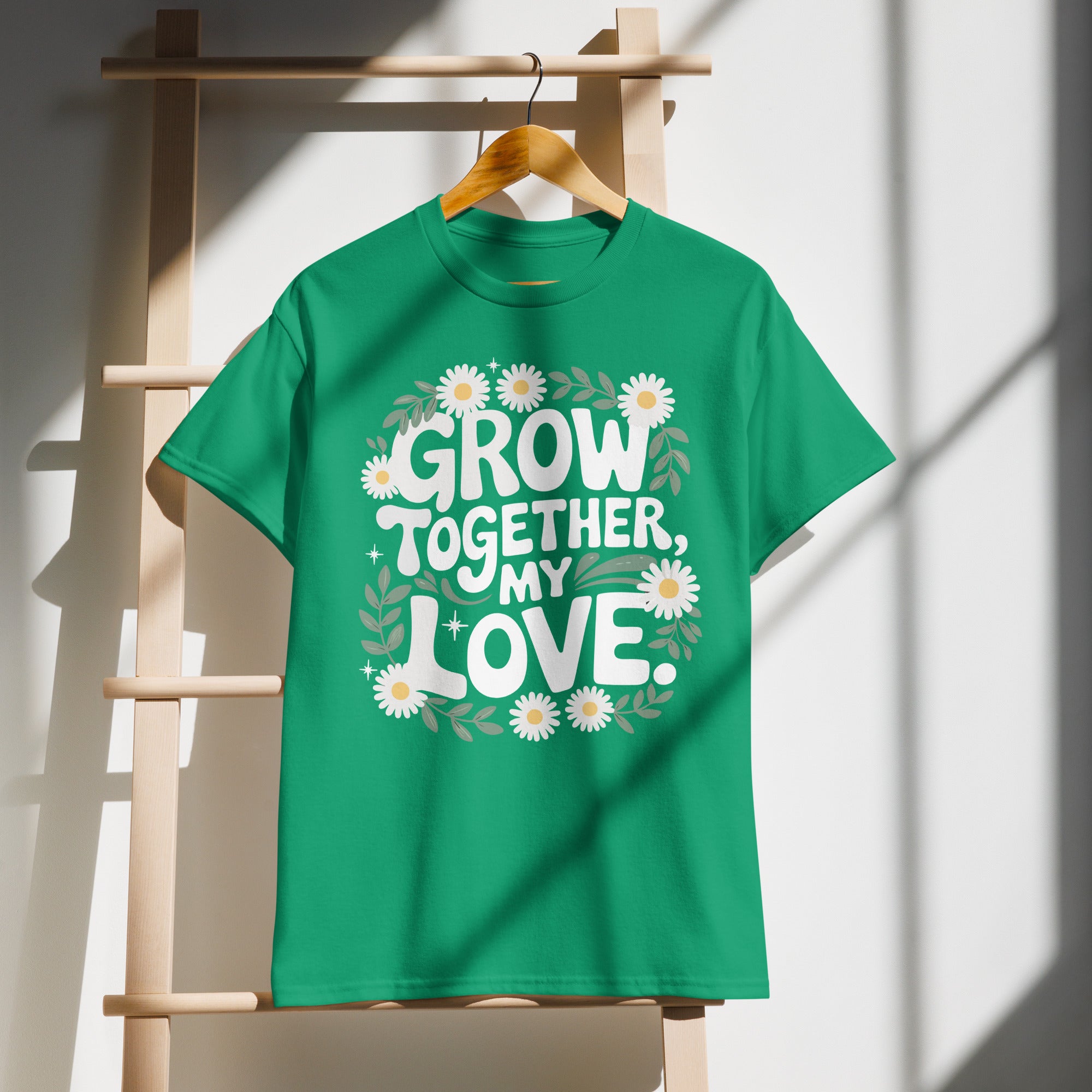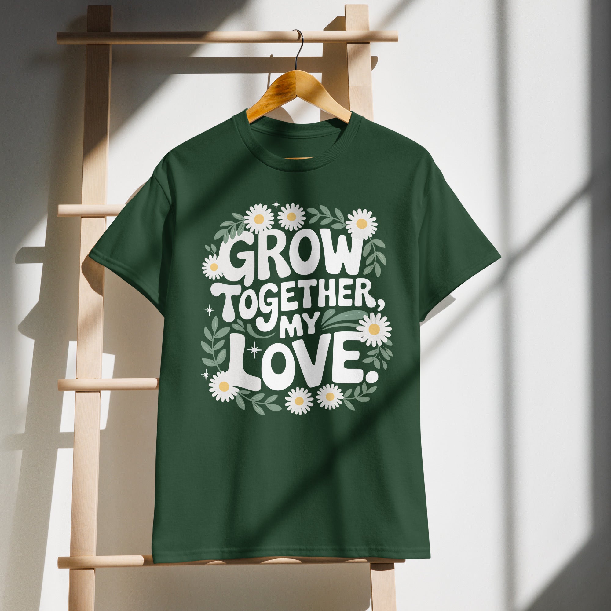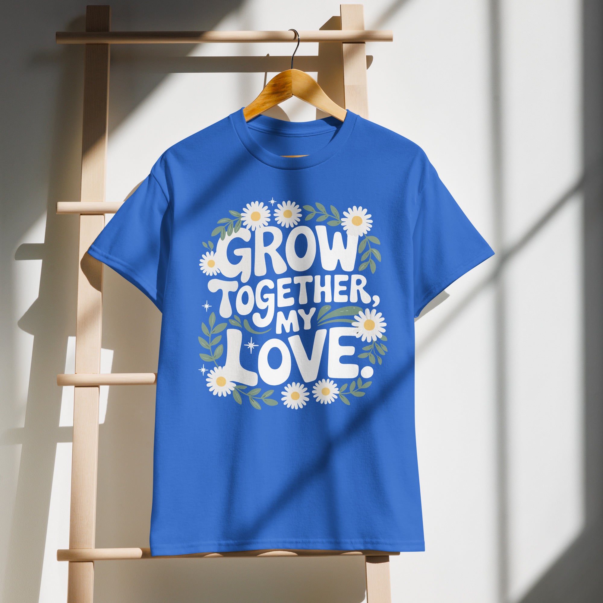 Let love bloom with this enchanting "Grow Together, My Love" DryBlend® T-Shirt. Featuring charming daisy blooms, soft green leaves, and hand-lettered typography, this design creates a cozy, romantic vibe that makes it perfect for heartfelt gifting. This gift is for her, crafted to turn cherished moments into lasting memories — embodying Giftomory’s essence: where every gift becomes a memory.