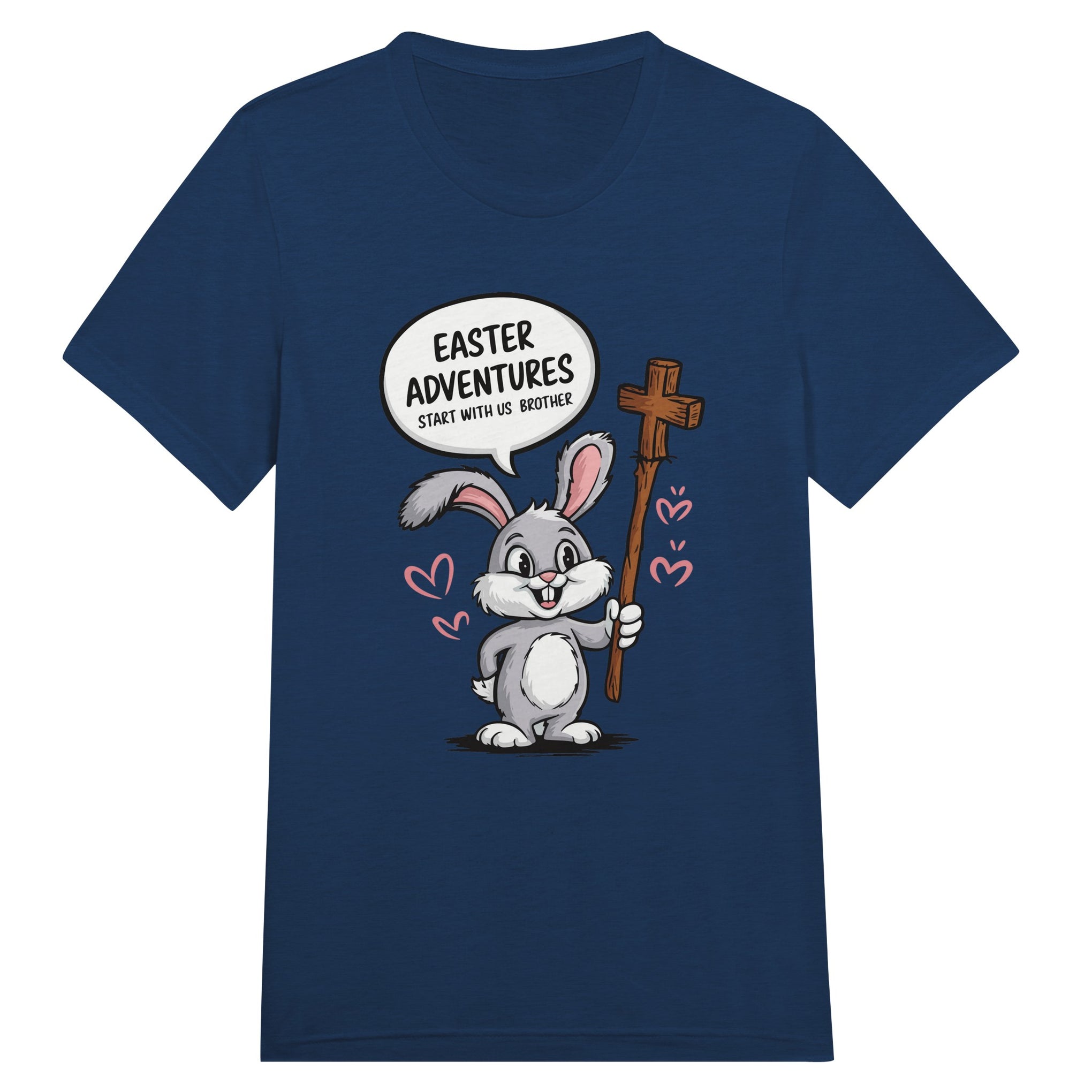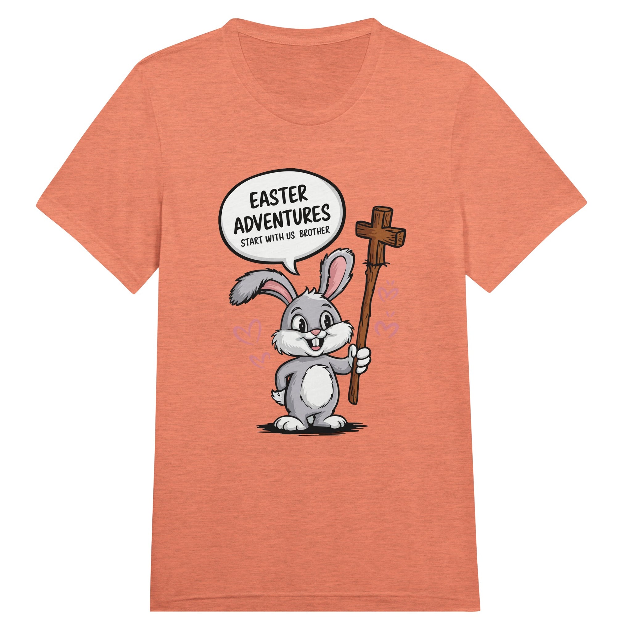 Easter is a time of faith, family, and unforgettable adventures, and this Easter-themed T-shirt for Brother perfectly embodies the spirit of the season! The design features a cheerful gray bunny holding a wooden cross, symbolizing both the playfulness of Easter and its spiritual essence. The lively typography with “Easter Adventures Start with Us Brother” adds a fun, engaging touch, reminding us of the joy of sibling bonds during the holiday. The soft pastel color palette of grays, pinks, and browns gives the design a warm and inviting ambiance, making it a great choice for Easter egg hunts, church gatherings, and family celebrations. Giftomory’s mission to blend “Gift” and “Memory” is reflected in this shirt, ensuring that each Easter spent with your brother is extra special.