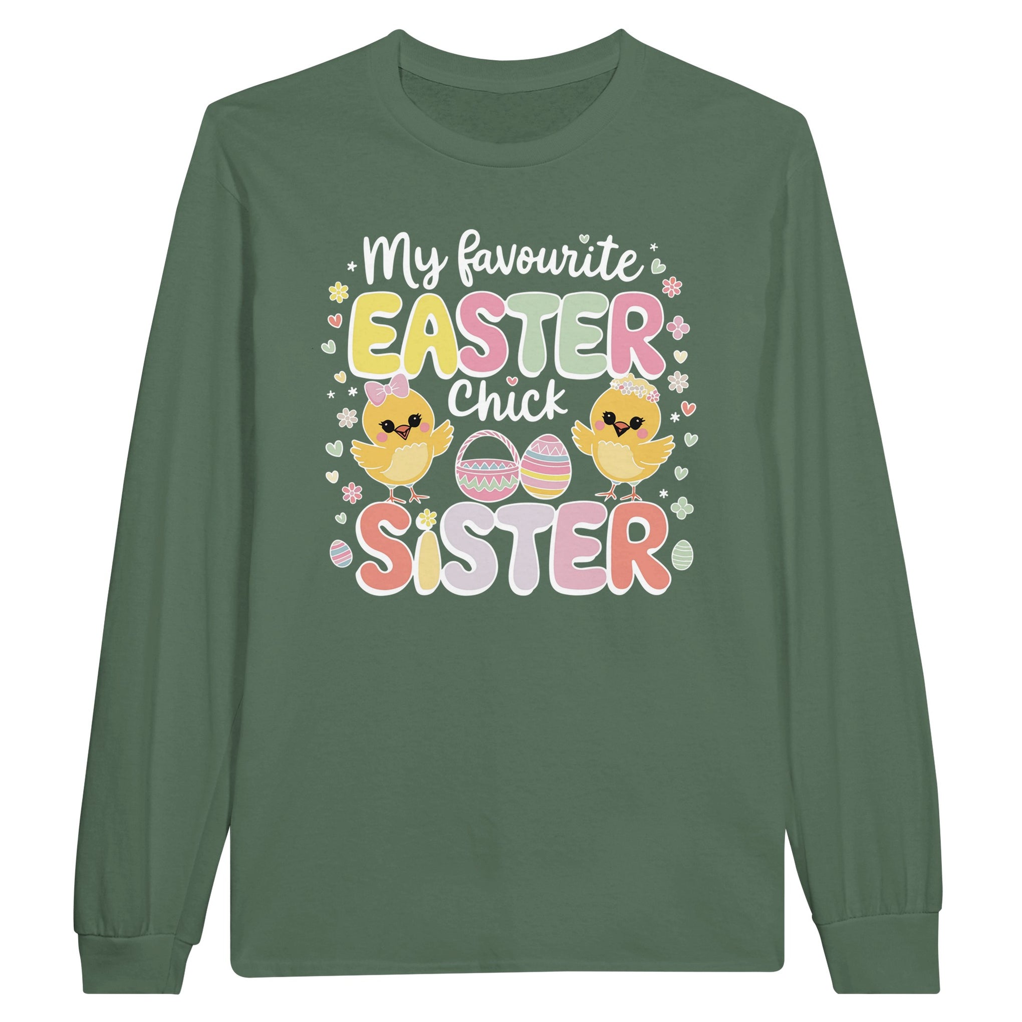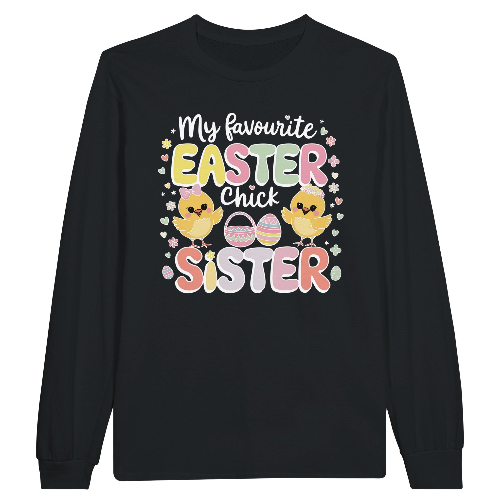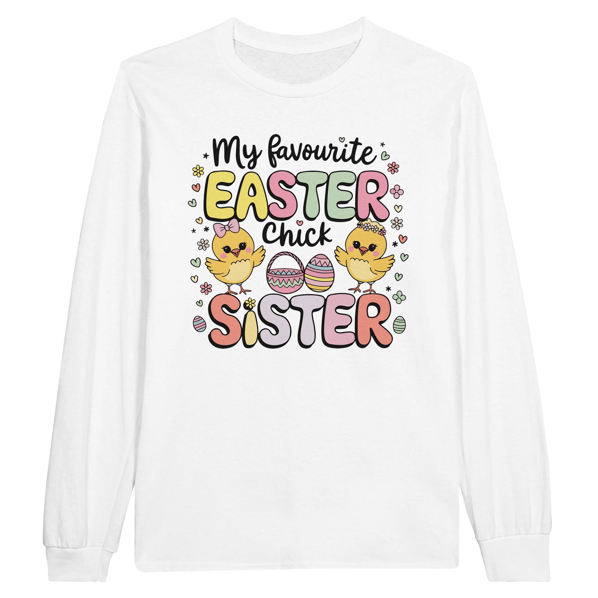 This design is for the sister who adds sparkle to every celebration—My Favourite Easter Chick Sister Shirt brings Easter joy to life with two cute baby chicks, hand-drawn florals, and pastel-decorated eggs. The whimsical lettering and spring colors create a cheerful vibe, perfect for gifting, egg hunts, or brunch. From Giftomory—where every gift holds a memory—this tee is a playful tribute to sibling love and springtime fun.