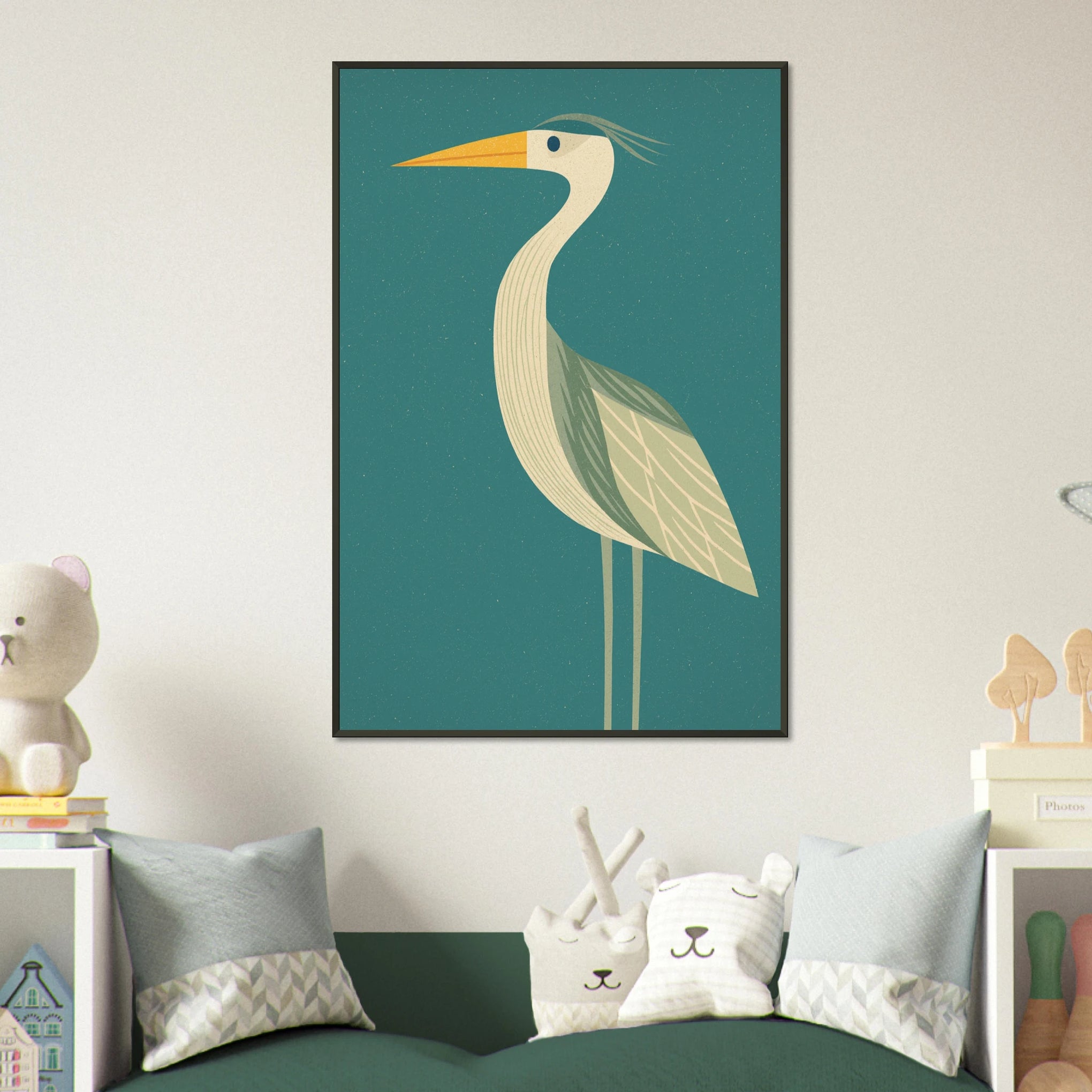 Metal Framed Poster - This serene bird artwork captures the elegance of nature with clean shapes and calming hues. Its minimalist beauty brings a grounding, peaceful energy to any room. This gift is for bird lovers, design minimalists, or anyone who finds calm in simplicity. A true blend of Gift + Memory by Giftomory.