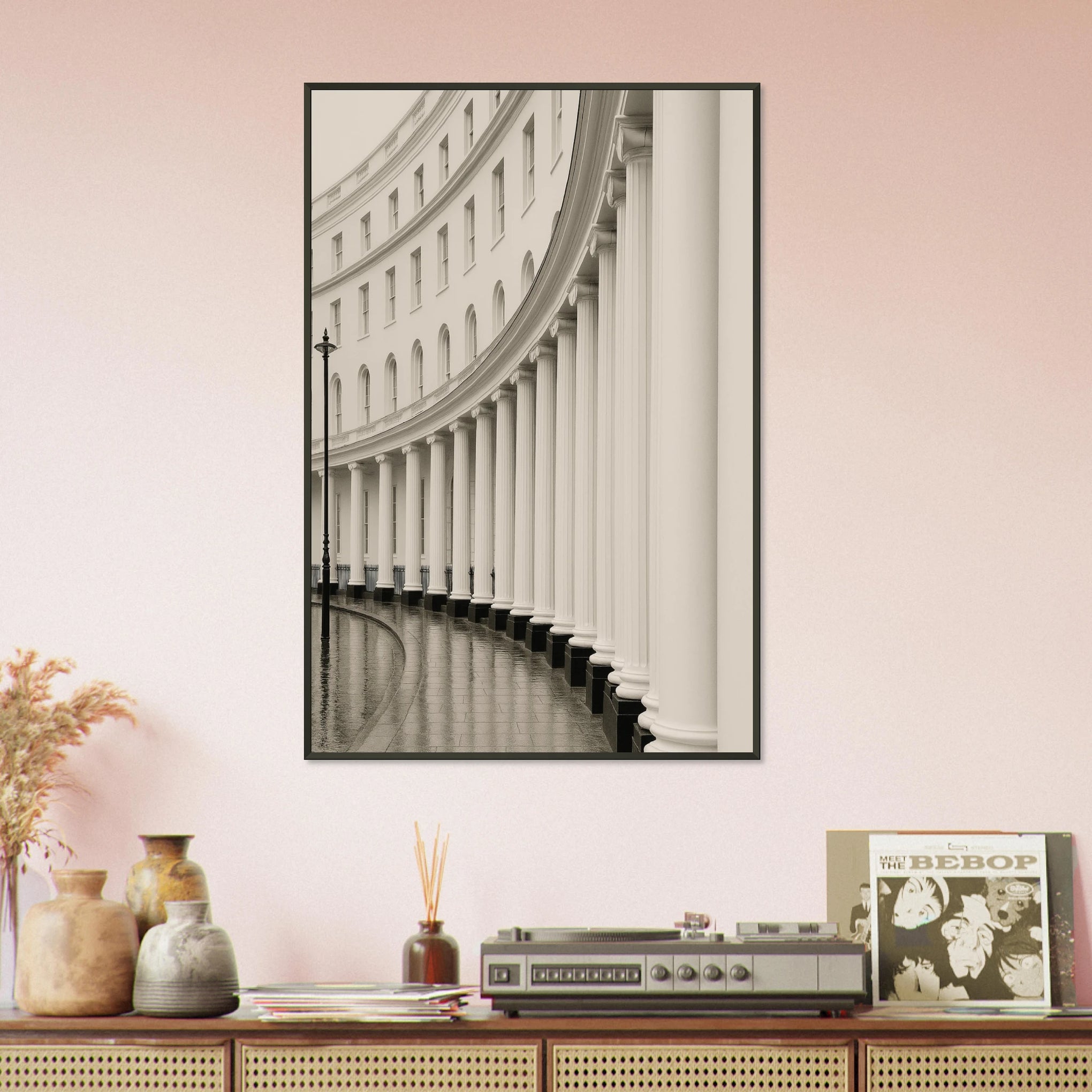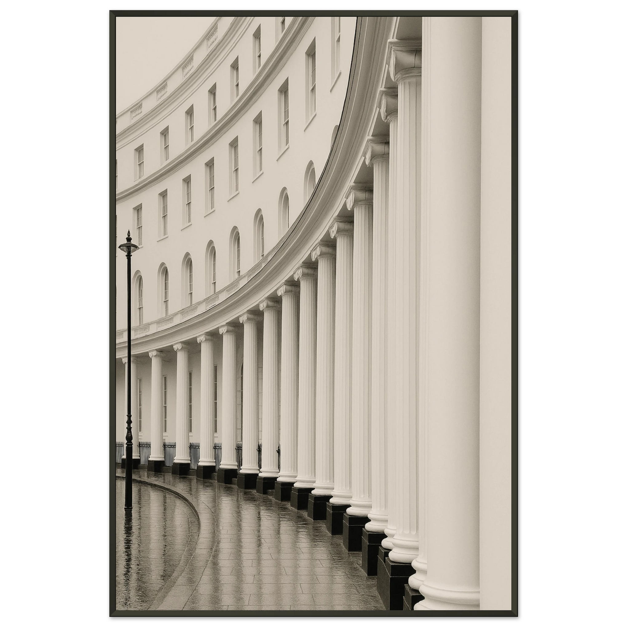 This metal-framed poster captures the graceful rhythm of classical columns and curved facades, evoking a sense of harmony and sophistication. Ideal as a housewarming, anniversary, or personal gift, it reflects Giftomory’s ethos of merging Gift and Memory. This gift is for those who appreciate refined architecture and timeless design.