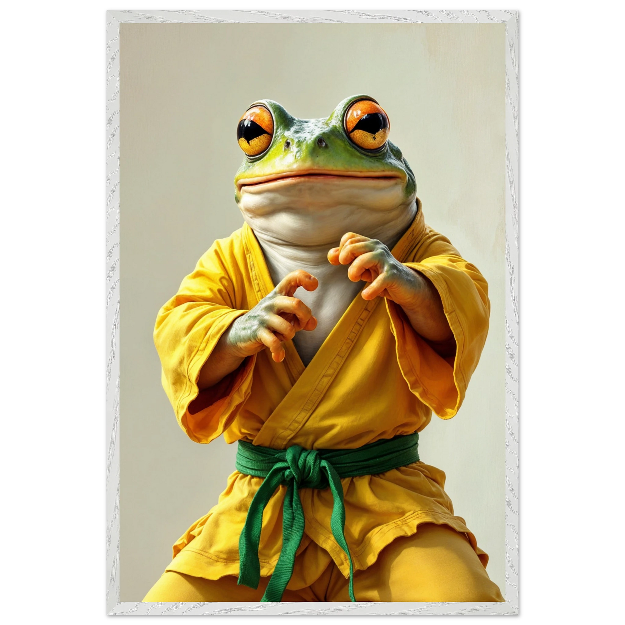 The Giftomory Wooden Framed Poster – Karate Frog Edition combines vibrant humor with visual power. This uniquely charming piece features a frog confidently poised in a golden yellow gi with a green belt—full of personality, discipline, and a dash of silliness. This gift is for someone who loves martial arts, quirky humor, or an amphibious attitude. Whether it sparks nostalgia or kicks off a laugh, it aligns with the Gift + Memory spirit, turning fun into unforgettable decor.