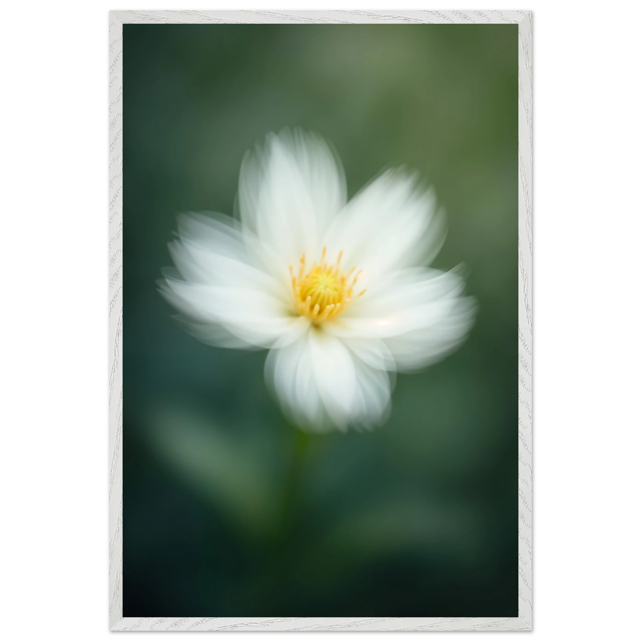 A delicate white bloom captured in soft motion, this design speaks to quiet strength and fleeting beauty. Perfectly aligned with Giftomory’s spirit of Gift + Memory, it adds an air of calm and introspection to any wall or heart.