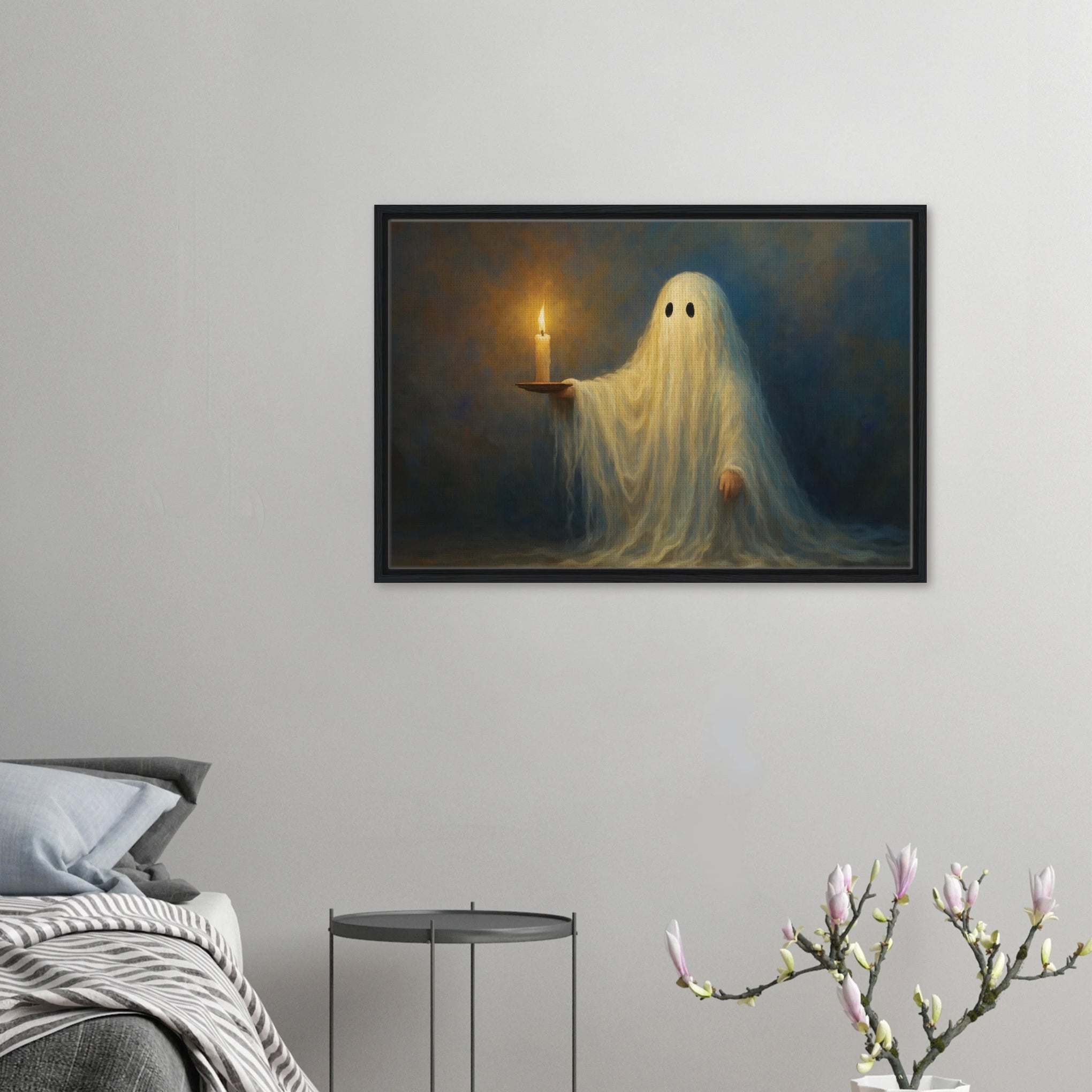 Let a soft spirit light the way. This gothic-inspired framed canvas, featuring a ghost with a flickering candle, evokes nostalgia, warmth, and whimsy—perfect for those who adore eerie yet endearing décor. Its moody blues and glowing amber tones set a tranquil, mysterious ambiance. This gift is for those who cherish quiet wonder, sentimental art, and poetic decor—true to the Giftomory spirit: where Gift meets Memory.