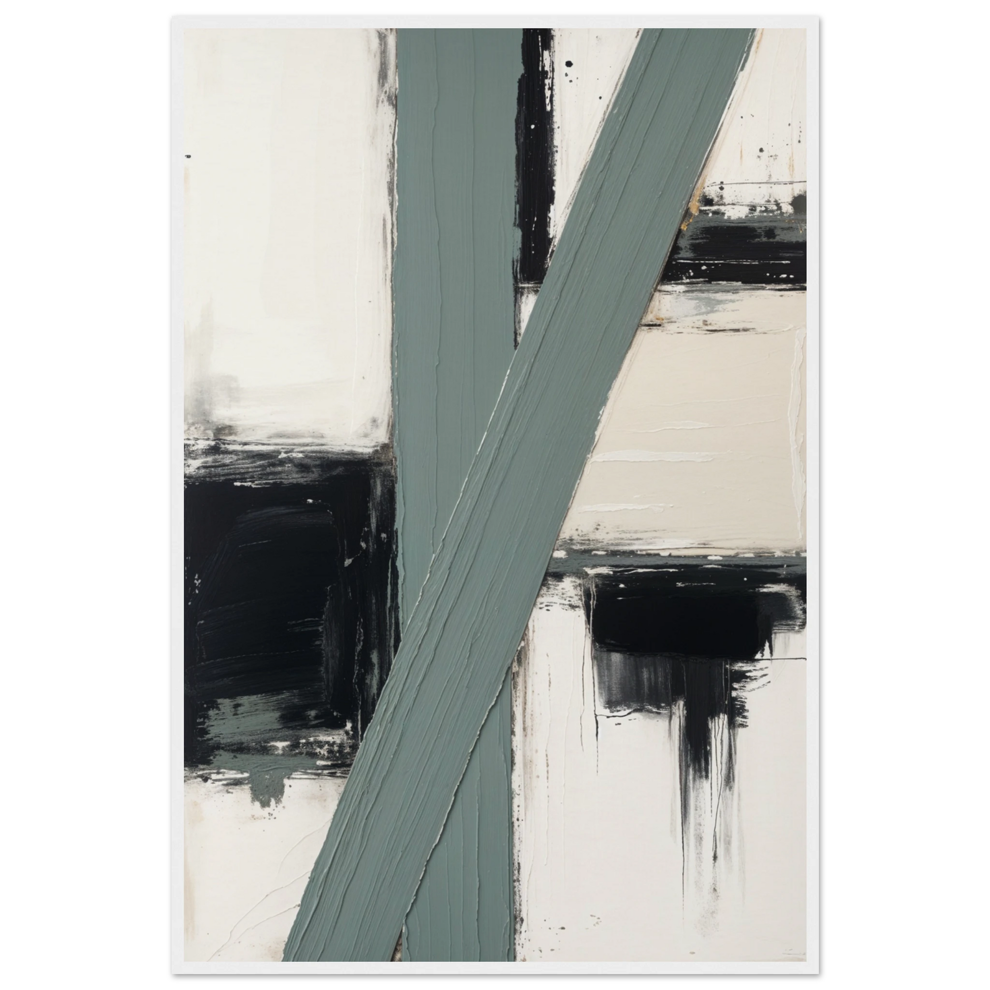 This gift is for the modern art admirer, the bold minimalist, or anyone whose space deserves a touch of expression. This Gift + Memory wooden framed poster features a raw interplay of white, cream, sage green, and black. The striking diagonals and textured strokes evoke a sense of motion and grounded elegance. Perfect for living rooms, creative studios, or thoughtful gifting, this piece turns a blank wall into a statement of emotion. Make it memorable. Gift it to yourself or someone else.