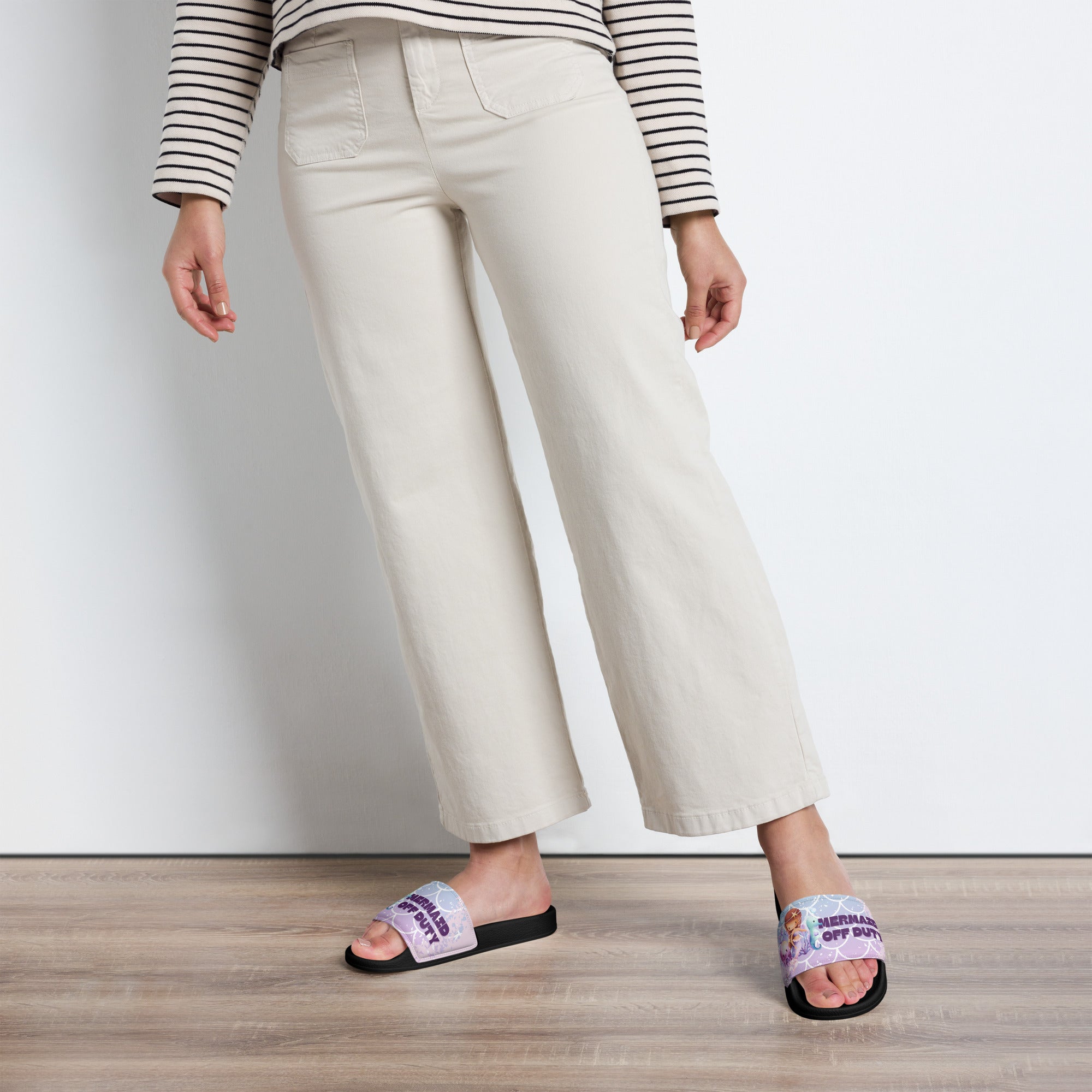 “Mermaid Off Duty” is for the woman who brings magic to every shore. This design is for the person who loves whimsical ocean vibes—featuring a pastel-scaled background, watercolor textures, and playful sea creatures like a cartoon mermaid, seahorse, and octopus. These Women’s Slides feel like a beach day fairytale. At Giftomory, where Gift meets Memory, this design celebrates sunlit joy, summer fun, and carefree friendships—perfect for poolside lounging, seaside strolls, or gifting your ocean-loving bestie.