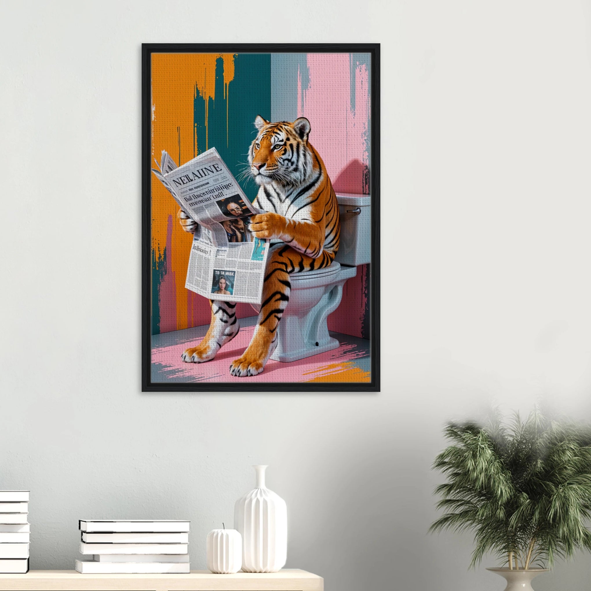 The Framed Canvas – Pop Art Tiger Moment Design captures a majestic tiger sitting casually on a toilet, reading a newspaper—surrounded by dripping pink, teal, and orange walls. It’s an unforgettable fusion of absurdity and style. This gift is for bold personalities, humor lovers, and pop art collectors. With Giftomory, the wildest memory becomes wall-worthy—where Gift meets Memory.
