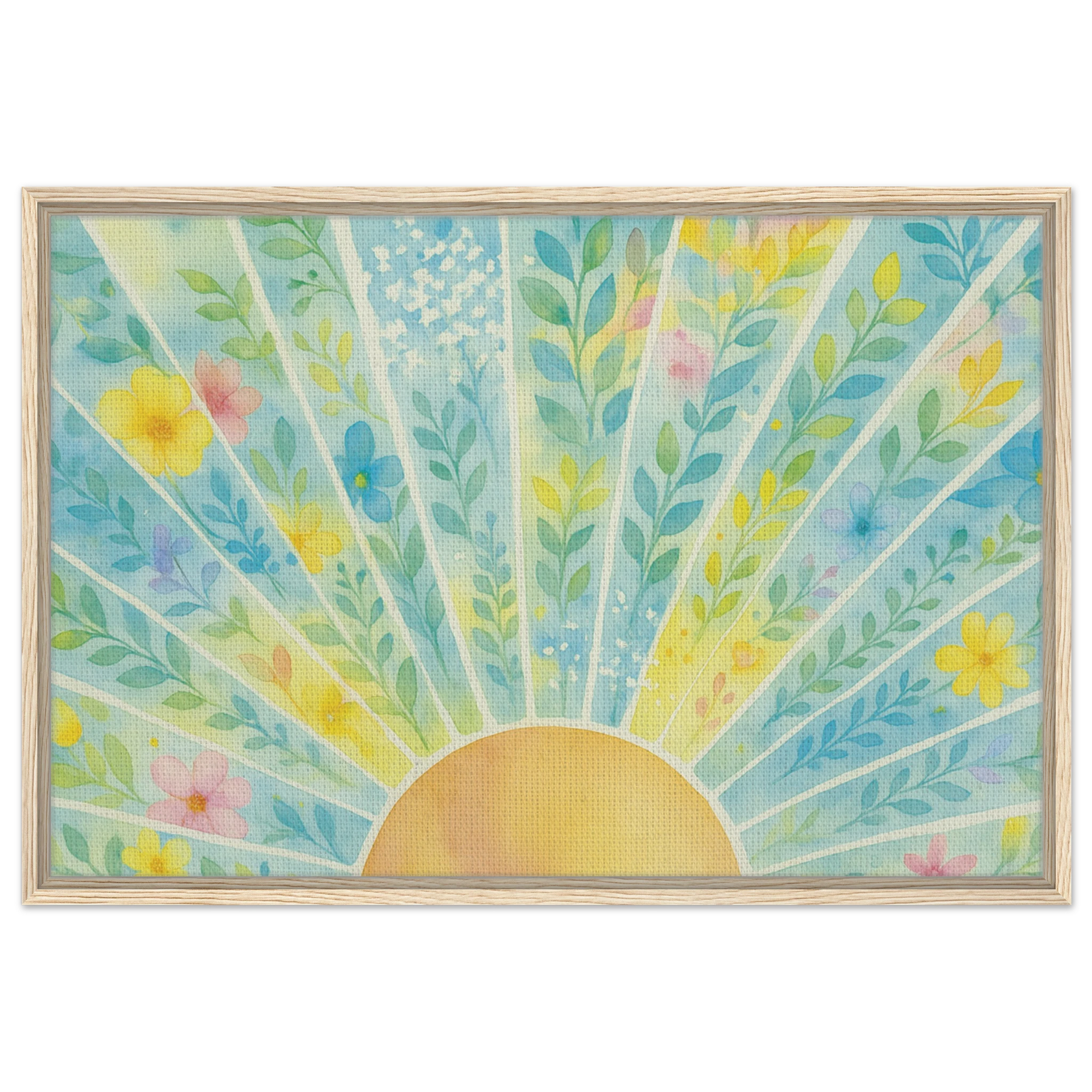 Brighten your walls with this sun-kissed floral burst. Painted in tender watercolors, this framed canvas radiates positivity with a rising sun and blooming foliage. A symbol of new beginnings and inner peace—this gift is for anyone who needs a little sunshine in their space. Embrace the Giftomory essence, where every gift holds a memory.