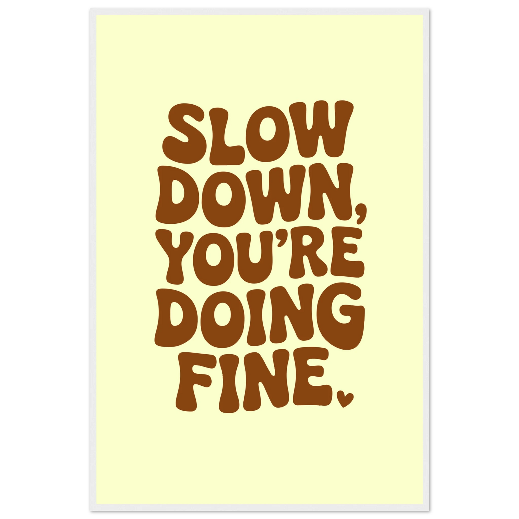 The “Slow Down, You’re Doing Fine” Wooden Framed Poster delivers a heartfelt message in bold brown typography against a gentle cream background. Its warm, retro aesthetic offers comfort and encouragement—ideal for daily mindfulness and emotional uplift. This gift is for someone who needs a little reminder that they’re enough—a gentle Giftomory designed to uplift walls and spirits.