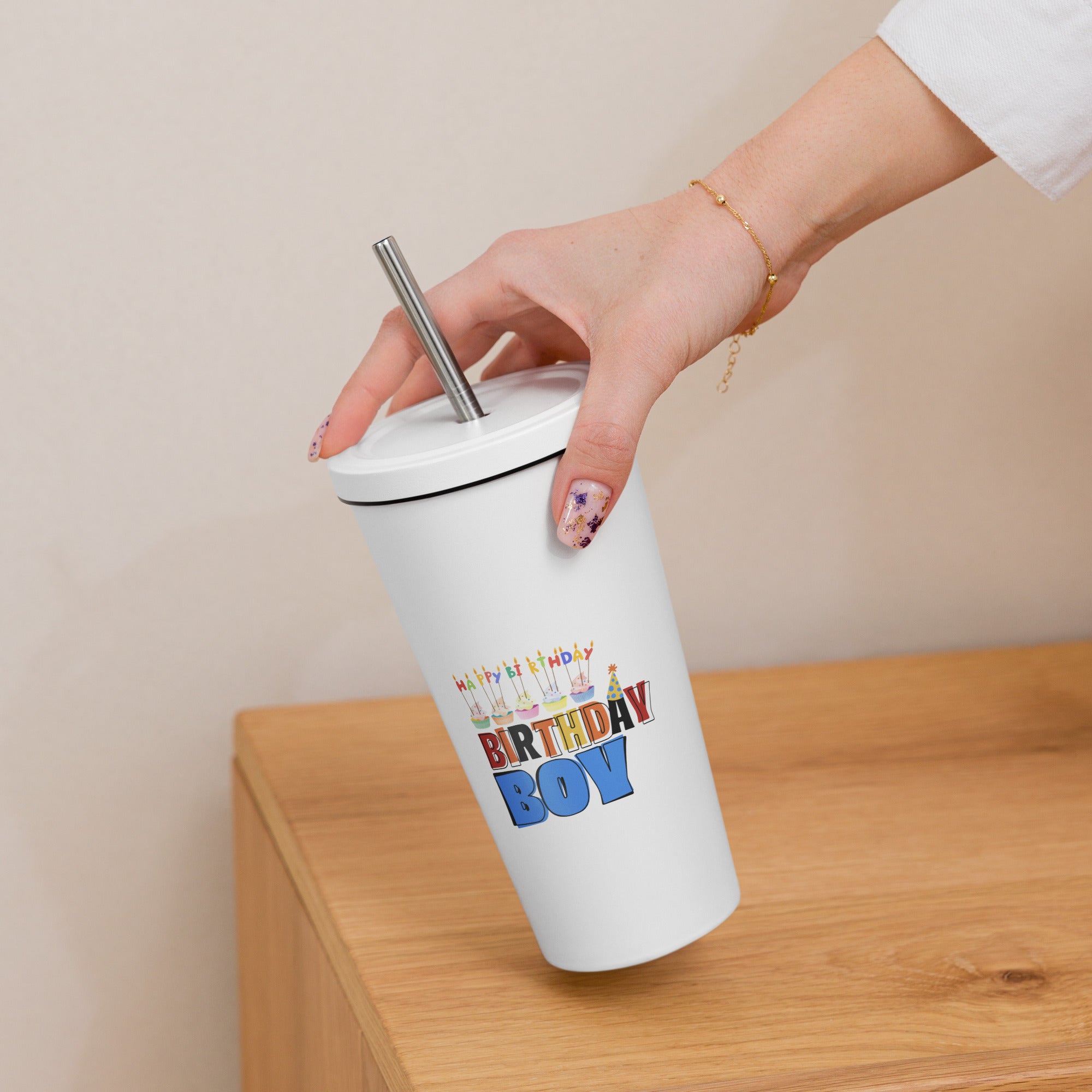 Make your husband’s birthday even more special with this vibrant and joyful tumbler! The design bursts with bright colors, birthday cupcakes, and festive candles, giving it an energetic and celebratory feel. A cute chibi-style boy holding balloons adds a charming and affectionate touch, symbolizing warmth and happiness. The bold "Birthday Boy" lettering with a mix of playful typography makes it an eye-catching and fun birthday gift for your husband. Whether he's sipping coffee in the morning or a refreshing drink in the evening, this tumbler will remind him of your love and the joy of his birthday celebration. Giftomory ensures that every sip is filled with cherished memories.