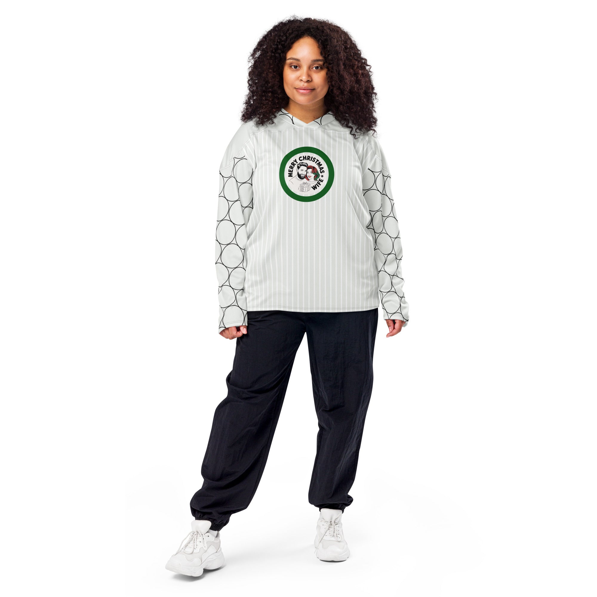 This design is for the woman who fills your holidays with meaning—the Christmas Love for My Wife – A Thoughtful Jersey Design is for whom person with product name. Featuring a circular green and white festive motif and a custom romantic illustration, this jersey exudes warmth, elegance, and timeless love. Giftomory: Make it memorable. Gift it to yourself or someone else.