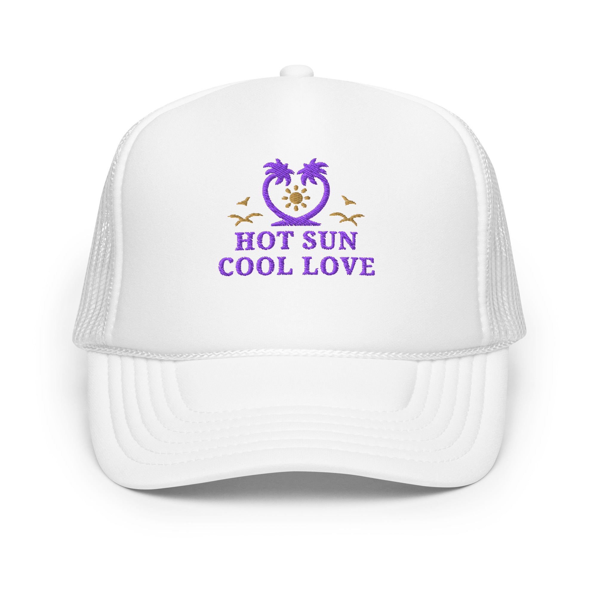 Our 'Hot Sun, Cool Love' Foam Trucker Hat is designed to celebrate the contrasts that make relationships so rich—like the warmth of the sun tempered by the coolness of love. Featuring a beautifully stylized sun embraced by palm trees, this design represents a perfect harmony between passion and comfort. It's an ideal gift for the man who is your sun and shade, reflecting the enduring love that thrives in both the good times and the challenges.