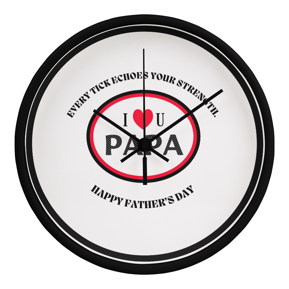 Honor the irreplaceable bond between you and your father with this striking Gift + Memory Wall Clock. The design features a powerful heart-centered “I ❤️ U PAPA” message, framed in bold circles with impactful black and red tones. The quote “Every Tick Echoes Your Strength” creates an emotional ambiance perfect for offices, living rooms, or bedrooms. This gift is for the dad who inspires with quiet strength and unconditional love.