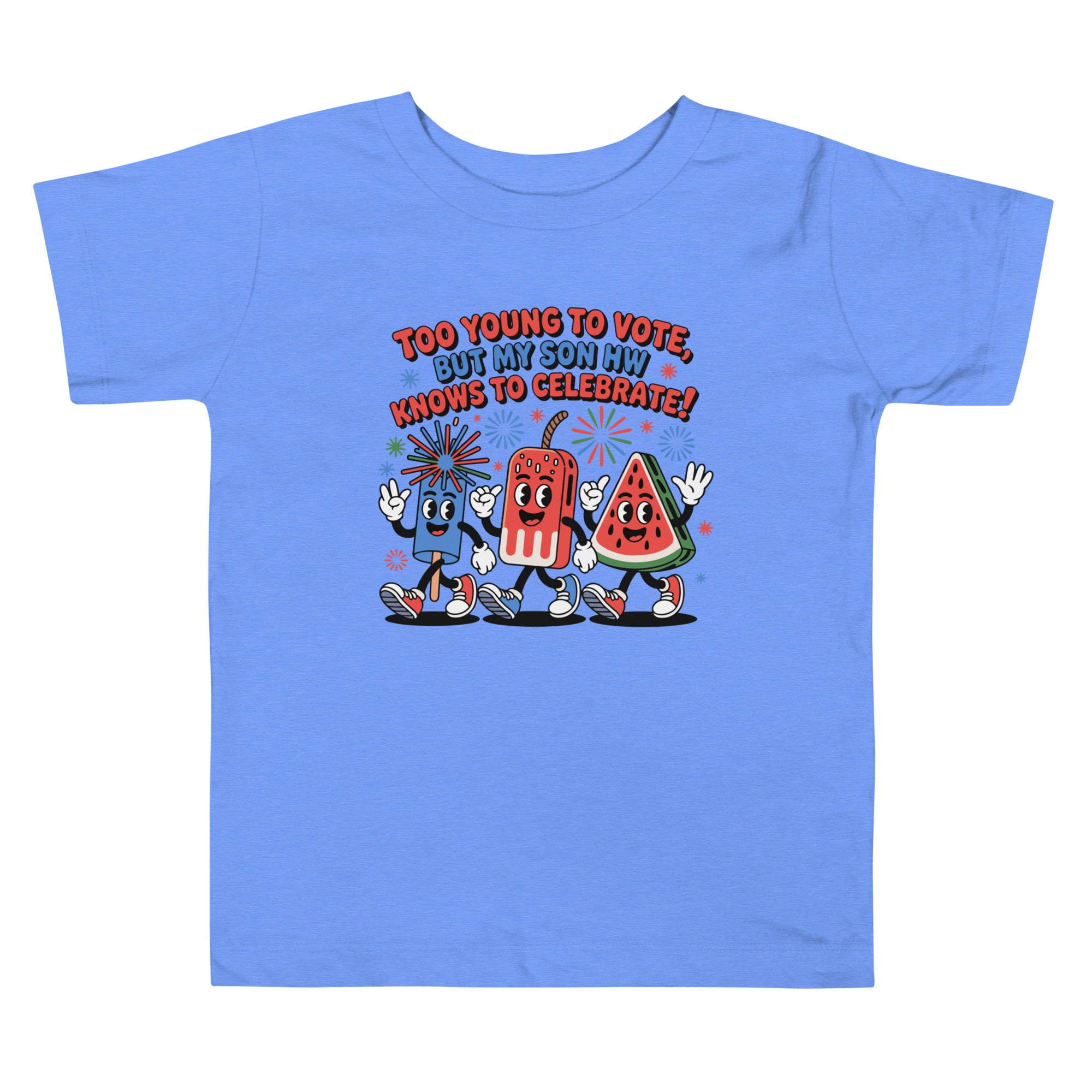 This gift is for your son on Independence Day—a celebration of pure joy, even if he’s too young to vote! With lively characters like a rocket pop, firecracker, and watermelon dancing amid fireworks, this tee bursts with energy and American spirit. Designed by Giftomory, where every tee transforms moments of laughter into lifelong memories.
