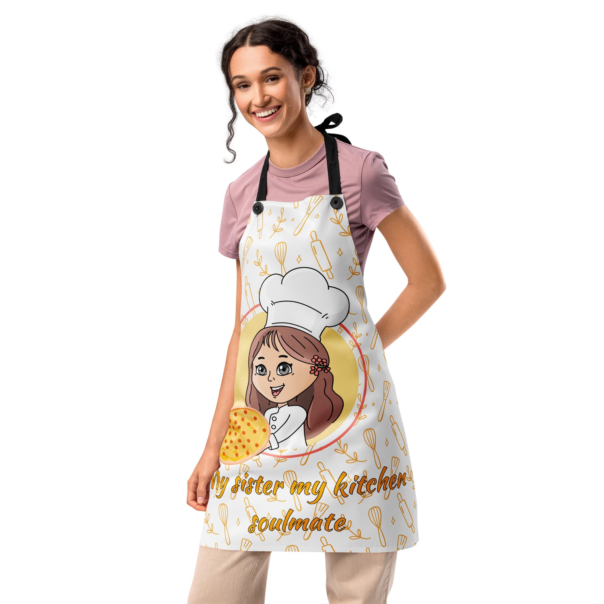 This gift is for the sister who’s more than a sibling—she’s your kitchen soulmate. With soft golden patterns, a smiling cartoon chef holding pizza, and heartwarming text, this apron celebrates shared laughter and recipes. Created by Giftomory, where “Gift + Memory” come together to tell your story.