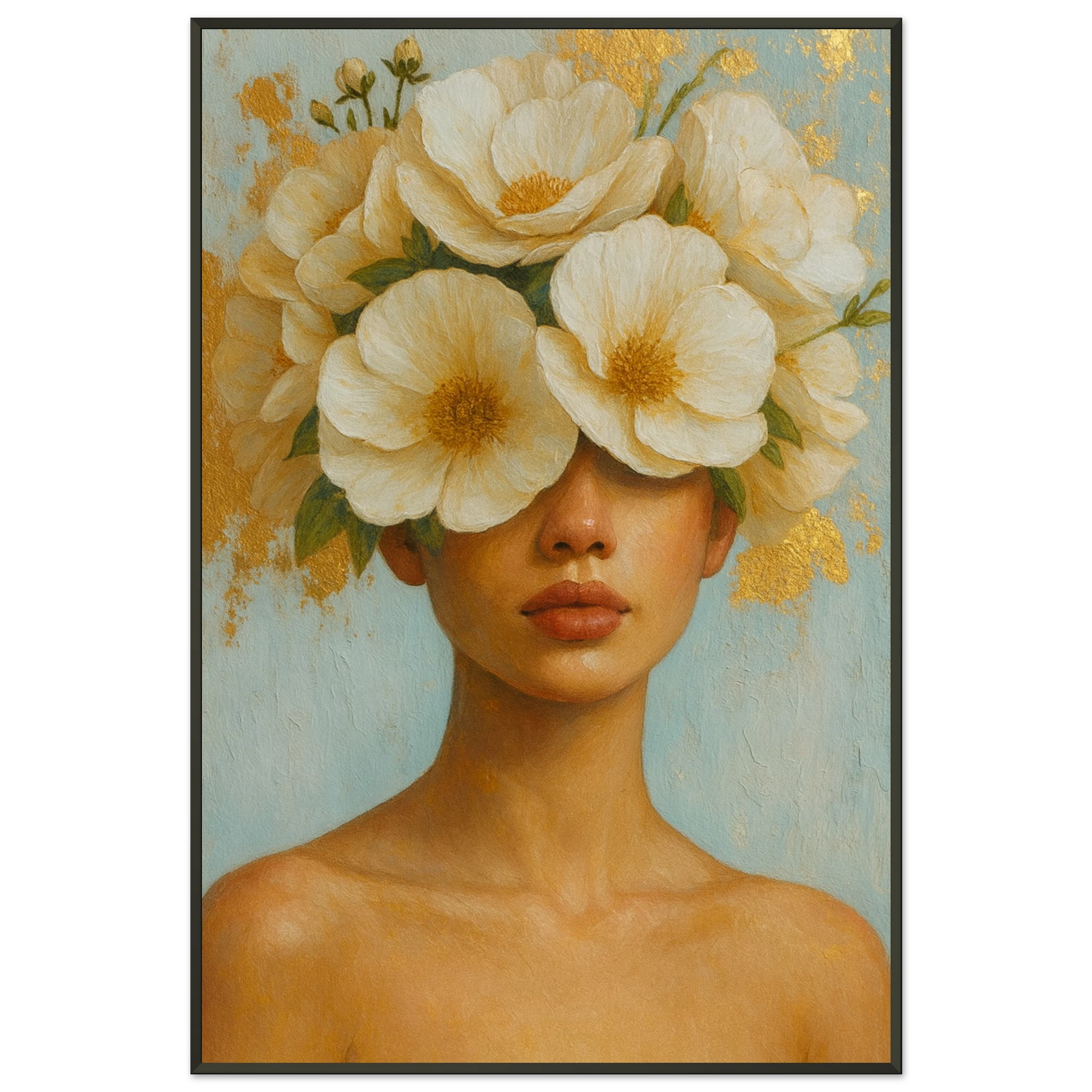 The Metal Framed Poster portrays a serene woman crowned with radiant white blossoms, merging elegance and nature in a golden, dreamlike palette. Its soft tones inspire reflection and celebration of beauty, making it ideal for gifting. With Giftomory’s ethos of Gift + Memory, this gift is for those who value meaningful art, femininity, and soulful spaces. Perfect for bedrooms, studios, or thoughtful gifting.
