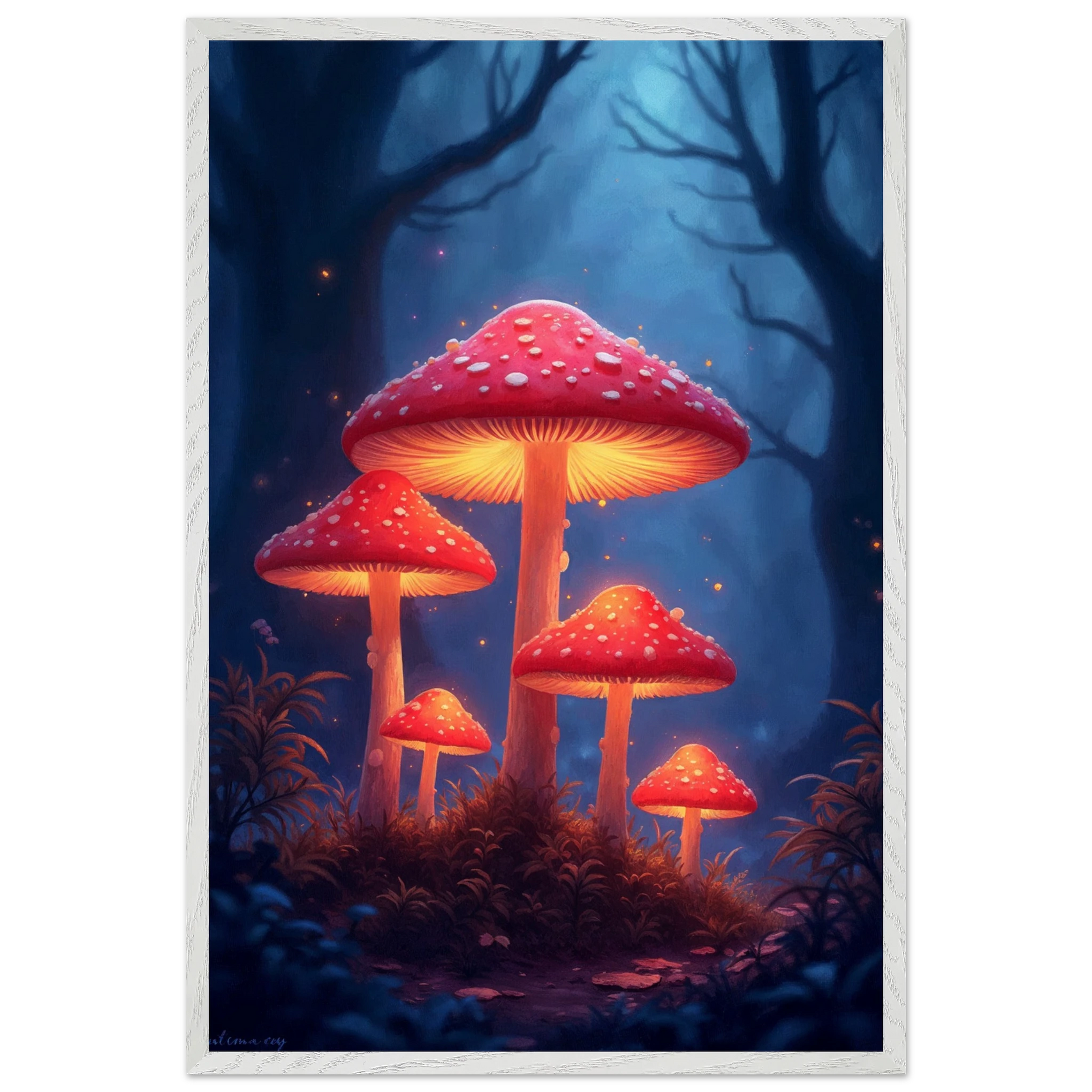 Step into a glowing fairytale with the Giftomory Wooden Framed Poster – “Enchanted Glowshrooms.” Set in a dreamy twilight forest, this artwork showcases a family of radiant red mushrooms casting warm light in the dark woods. This gift is for the dreamer, the storyteller, or the nature lover who finds beauty in the unexplained. It’s a whimsical Gift + Memory that transforms any wall into a portal to imagination.
