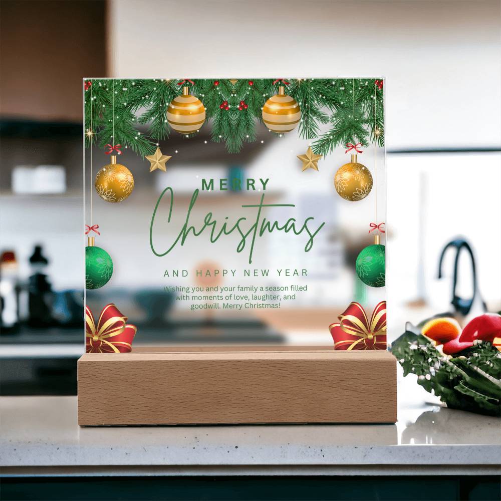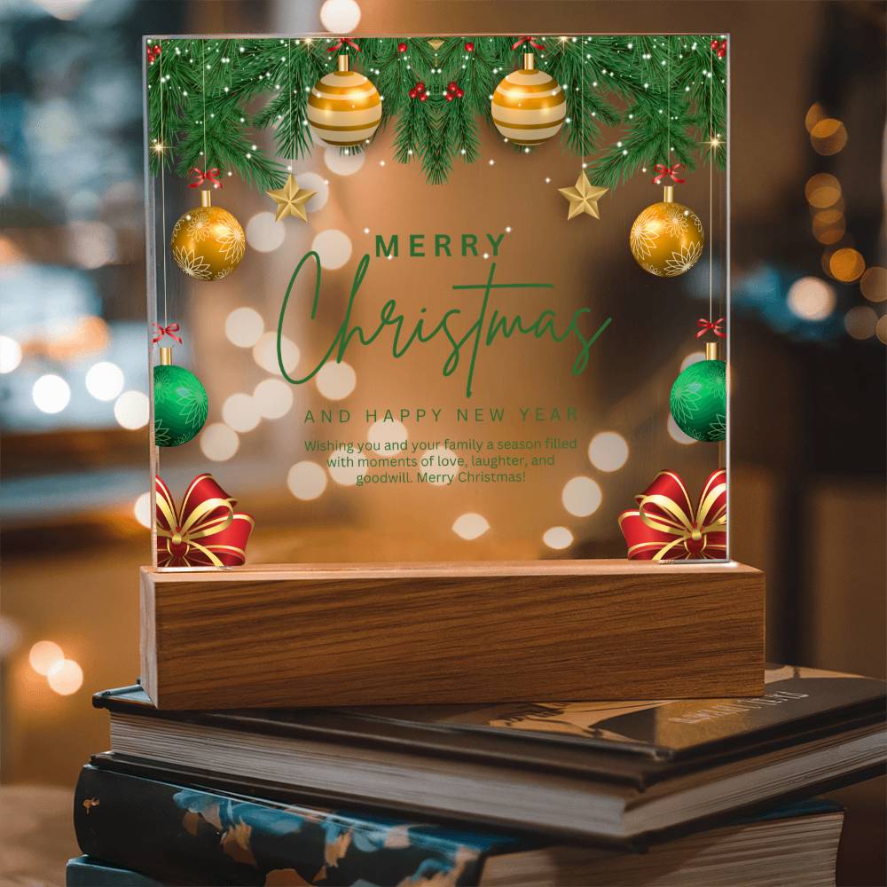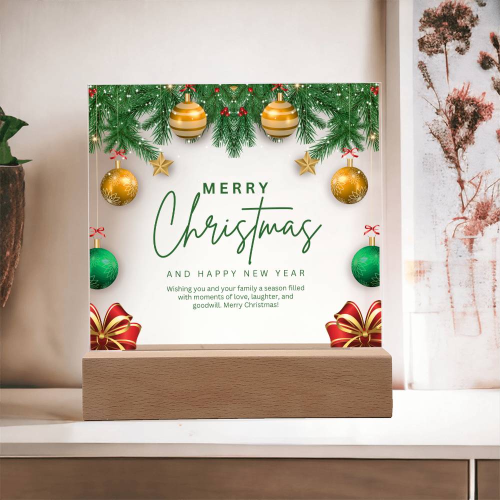 This Christmas & New Year Acrylic Plaque embodies the spirit of joy, family, and celebration. With glimmering gold ornaments, lush pine branches, and soft festive lights, it reflects both modern elegance and nostalgic charm. This gift is for those who cherish heartfelt connections and artistic keepsakes that capture the Gift + Memory essence of the holiday season.