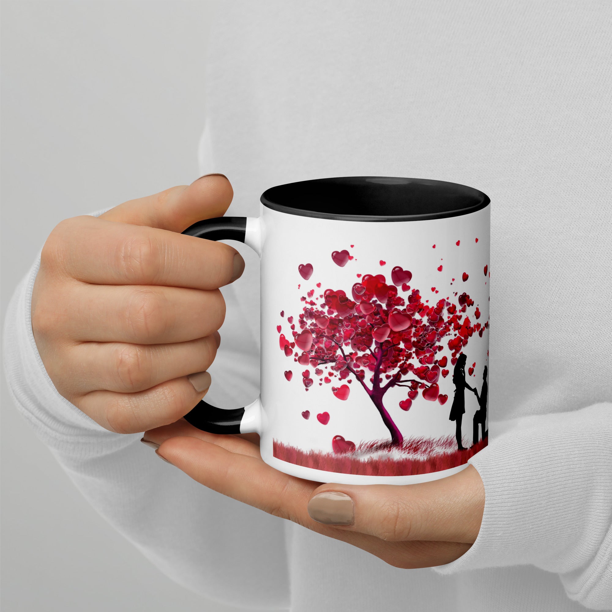 Celebrate love and devotion with this Mug with Color Inside, showcasing a romantic proposal scene beneath a heart-shaped tree. The design embodies commitment, warmth, and the beauty of shared memories. This gift is for anyone wishing to surprise their soulmate with a daily reminder of their bond. In true Giftomory style, it merges Gift + Memory to make birthdays unforgettable.