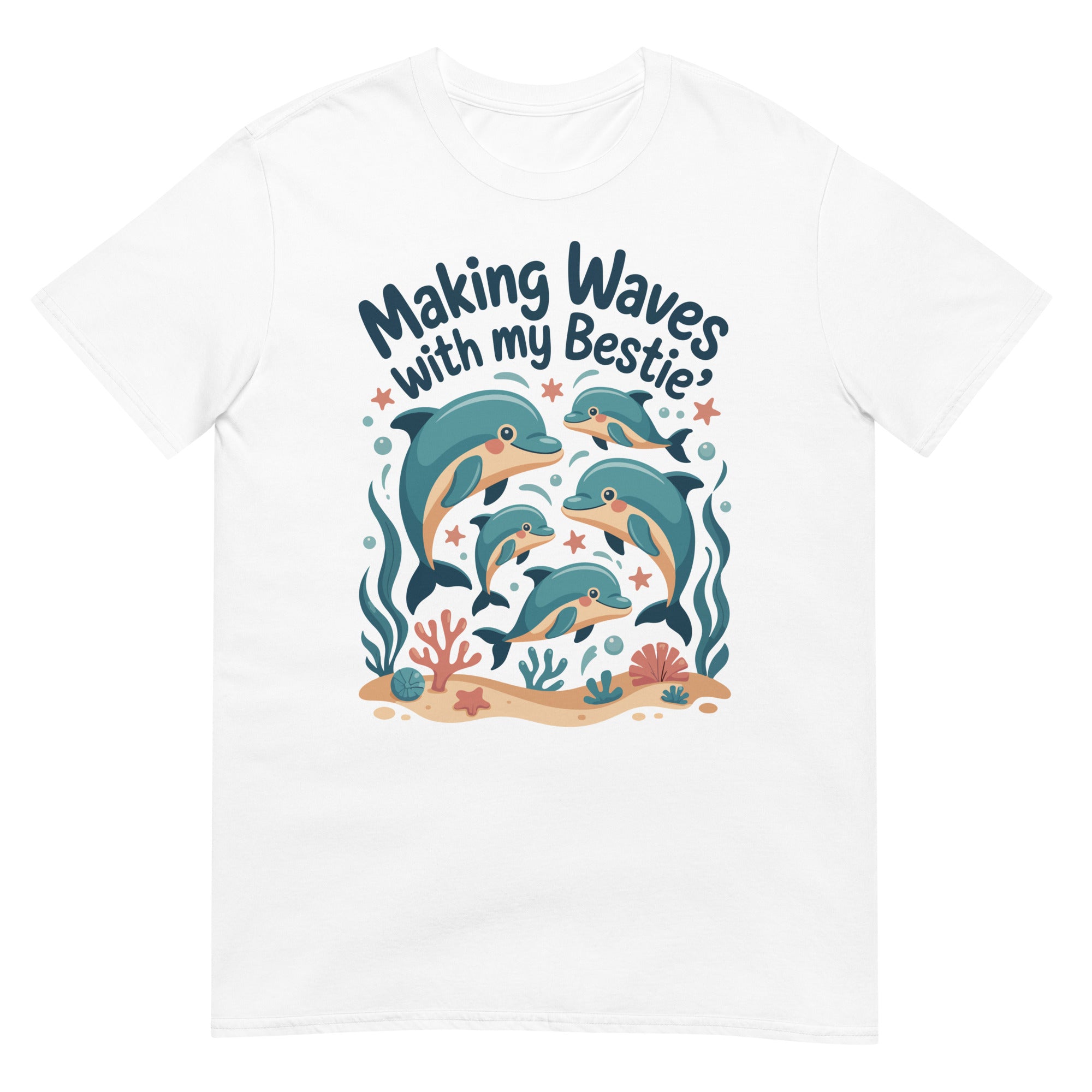 Celebrate the kind of friendship that dives deep with this cheerful Giftomory T-shirt. “Making Waves with My Bestie” features a pod of smiling dolphins surrounded by underwater magic—coral reefs, shells, and soft bubbles. With pastel ocean tones and adorable marine life, this gift is for the friend who swims through life’s ups and downs right by your side.