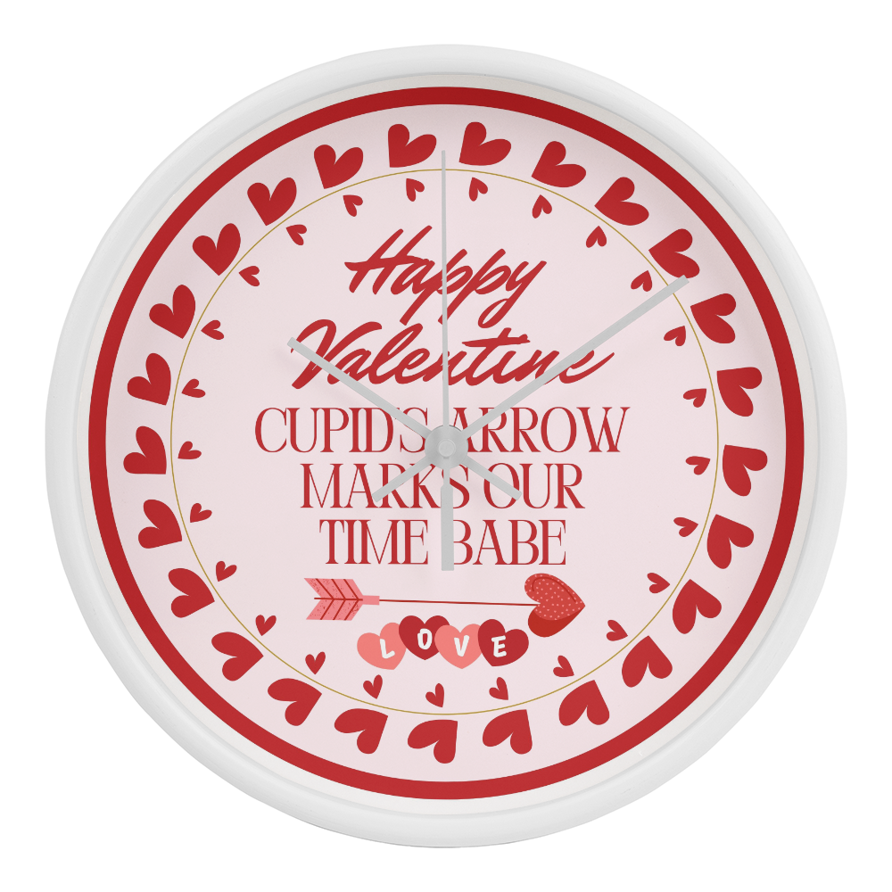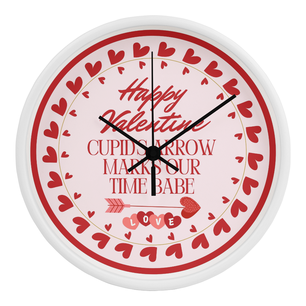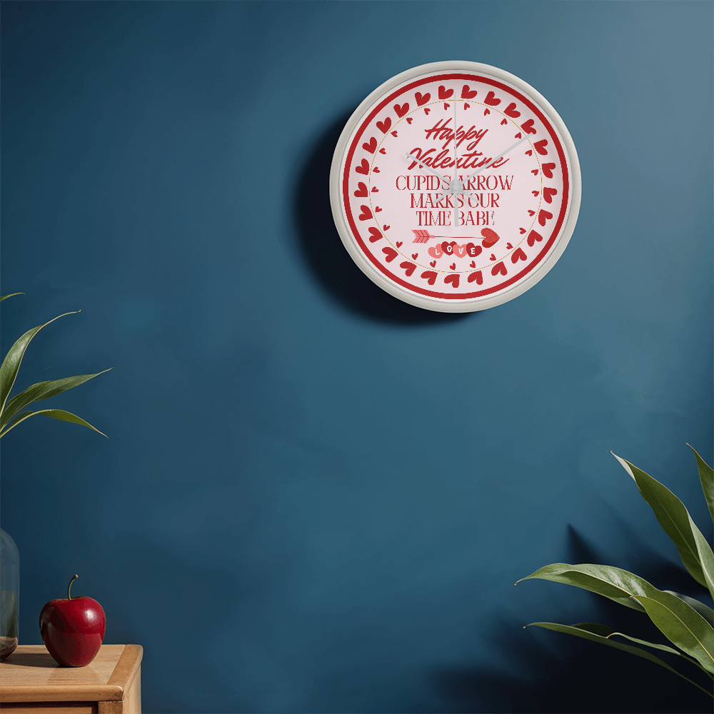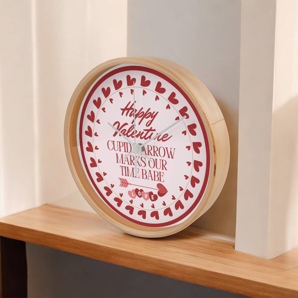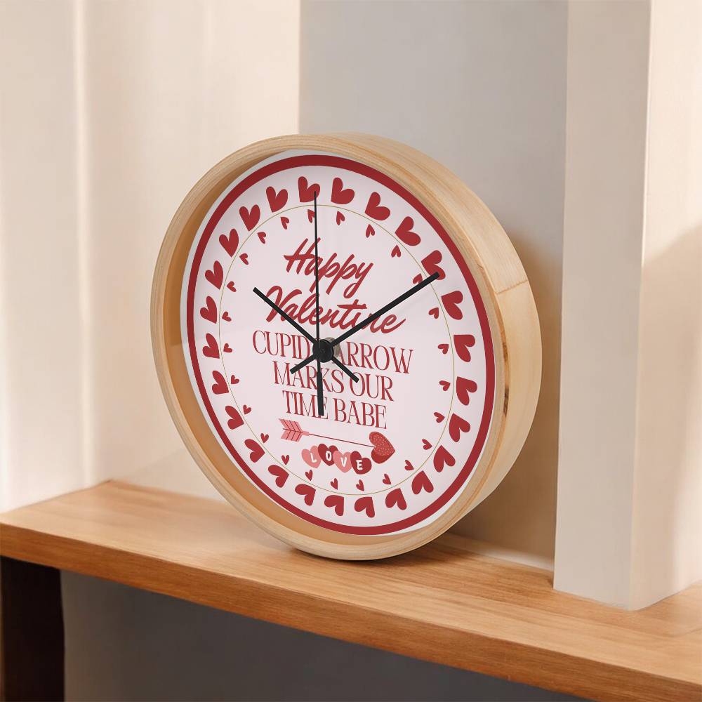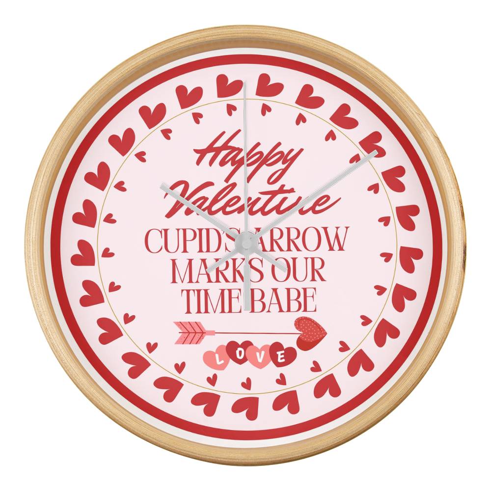 This Valentine’s Day Wooden Wall Clock captures the essence of love with its thoughtful design. Featuring a delicate pattern of red and pink hearts encircling the bold message, "Cupid’s Arrow Marks Our Time Babe," this clock is a symbol of romantic devotion. The artistic inclusion of Cupid’s arrow and playful "love" accents add a whimsical touch, creating a perfect blend of charm and sentimentality. Ideal for romantic settings like bedrooms or living rooms, this clock adds warmth and elegance to any space. At Giftomory, we seamlessly blend "Gift" and "Memory" to create keepsakes that hold sentimental value.