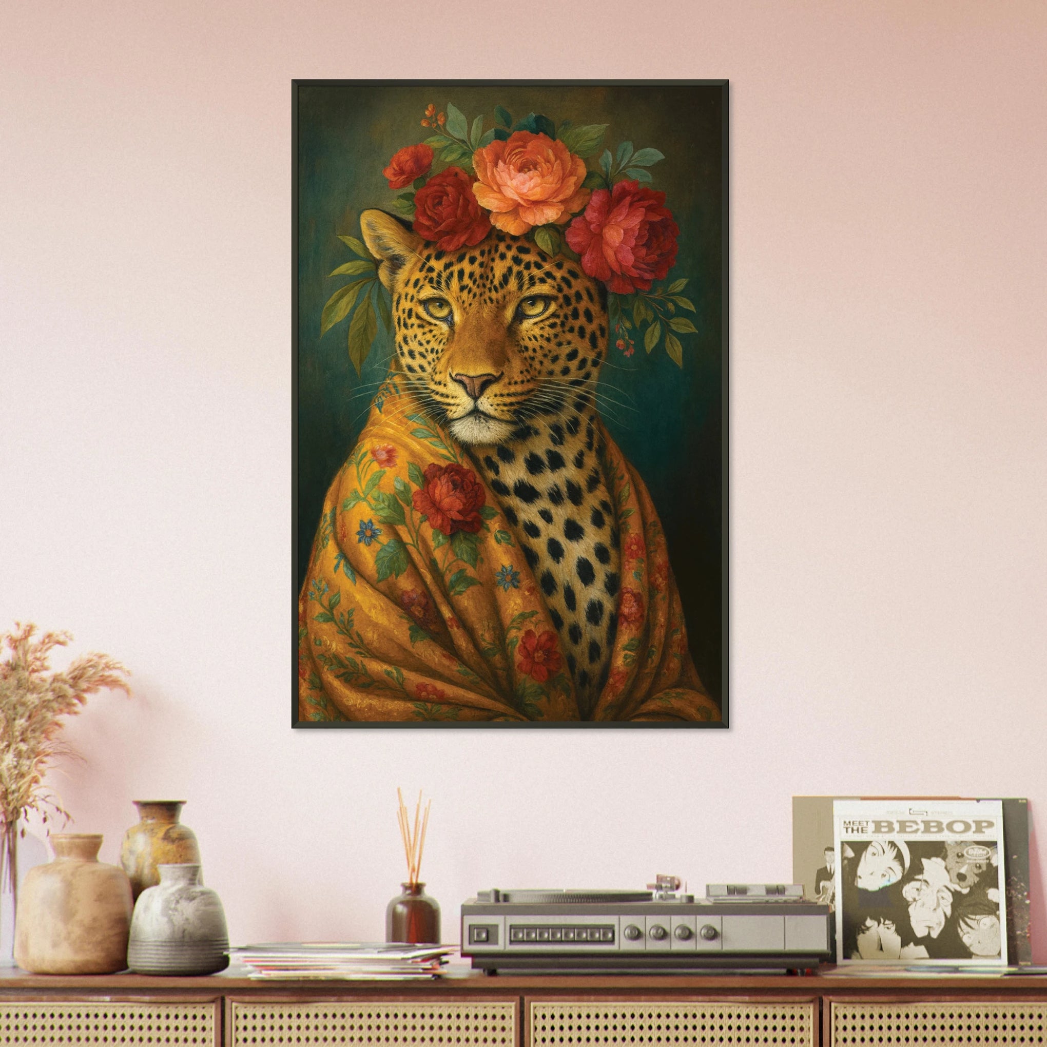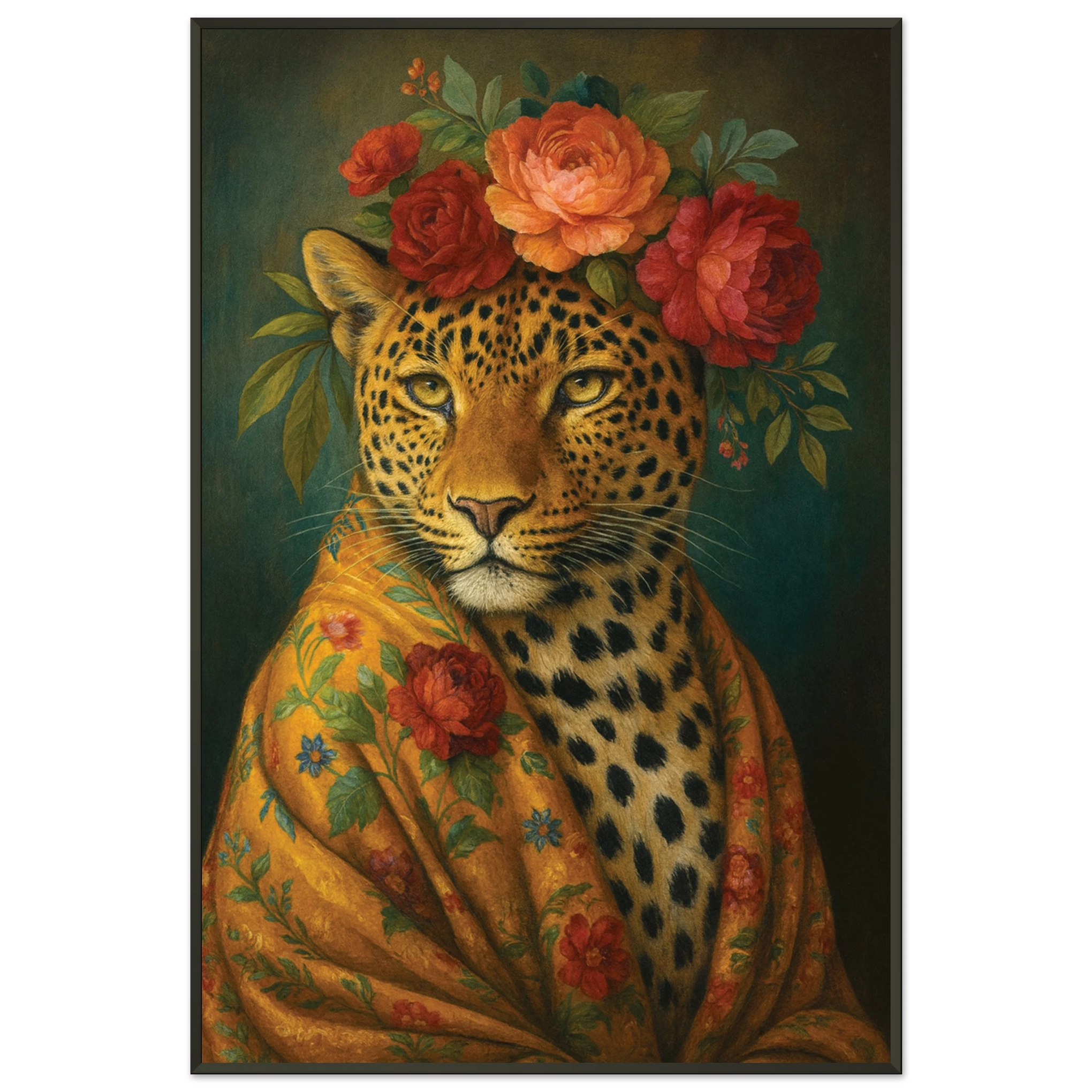 The Regal Bloom – Metal Framed Poster embodies strength, grace, and the poetry of nature. A majestic cheetah draped in floral patterns and crowned with blossoms, painted in rich golds and reds, evokes power softened by warmth. This gift is for art lovers who celebrate wild elegance—where Gift + Memory unite through color, courage, and calm.