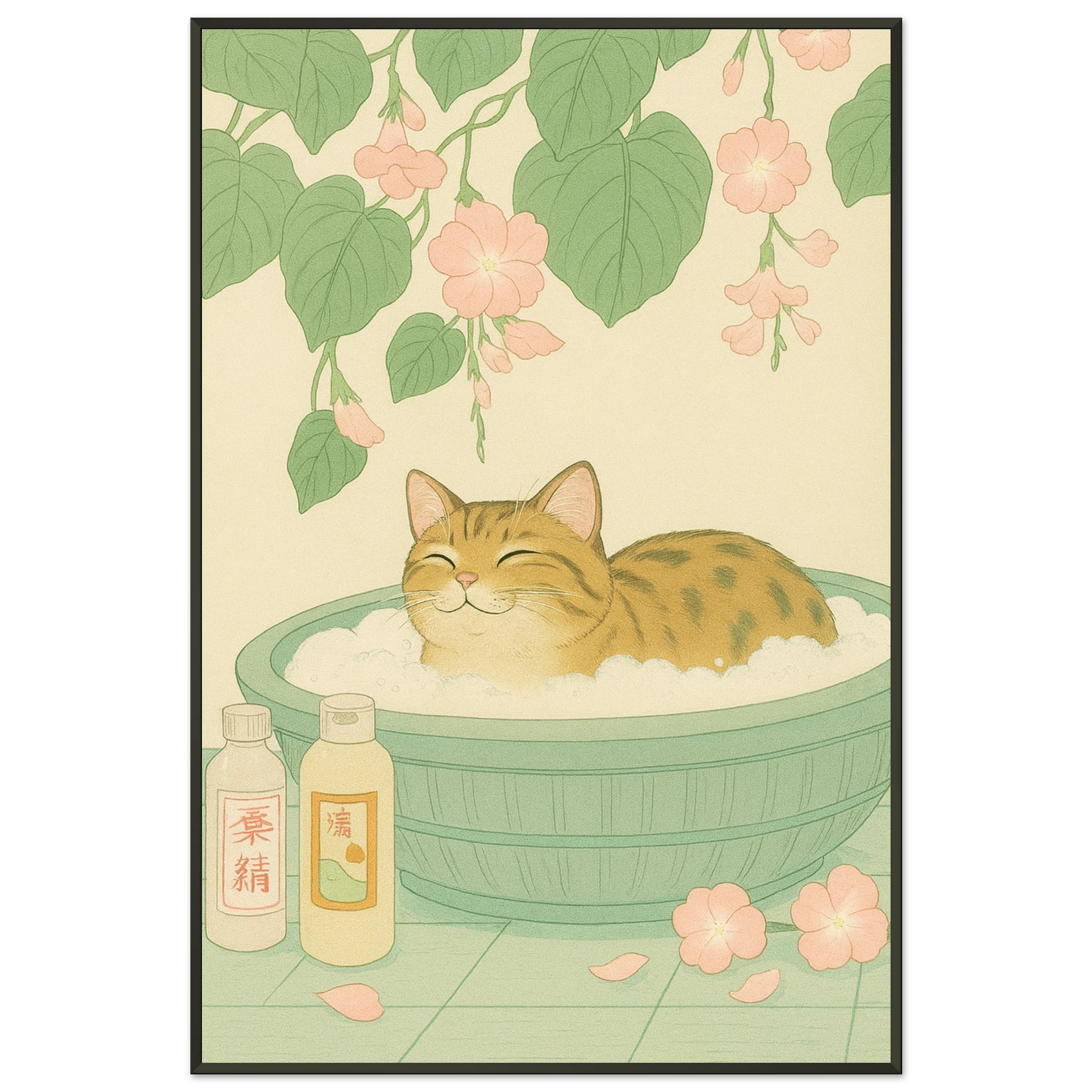 This Metal Framed Poster captures the sweetest moment — a content cat enjoying a bubbly bath beneath cascading flowers. The soft greens, pinks, and warm tones create a soothing, joyful vibe, perfect for kitchens, bedrooms, or cozy nooks. A delightful choice for cat lovers and art enthusiasts, it reflects Giftomory’s mission of merging Gift and Memory. This gift is for those who treasure comfort, joy, and feline charm.