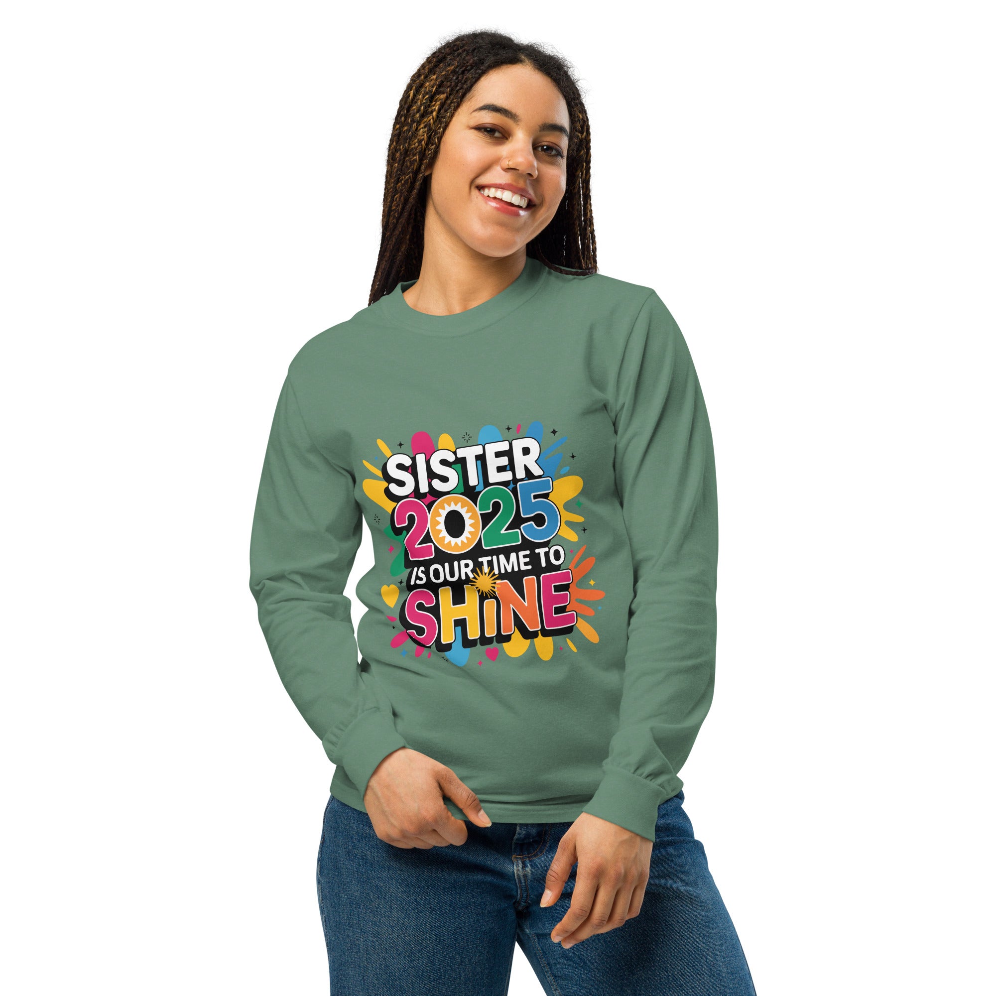 Crafted from garment-dyed heavyweight fabric, this hoodie offers premium comfort and durability. Made with 100% soft ring-spun cotton, it features a relaxed fit and pre-shrunk fabric for long-lasting wear. The twill-taped neck, ribbed cuffs, and shoulder-to-shoulder reinforcement ensure a cozy and stylish feel. Celebrate 2025 with your sister in the boldest way possible—because together, you shine the brightest!