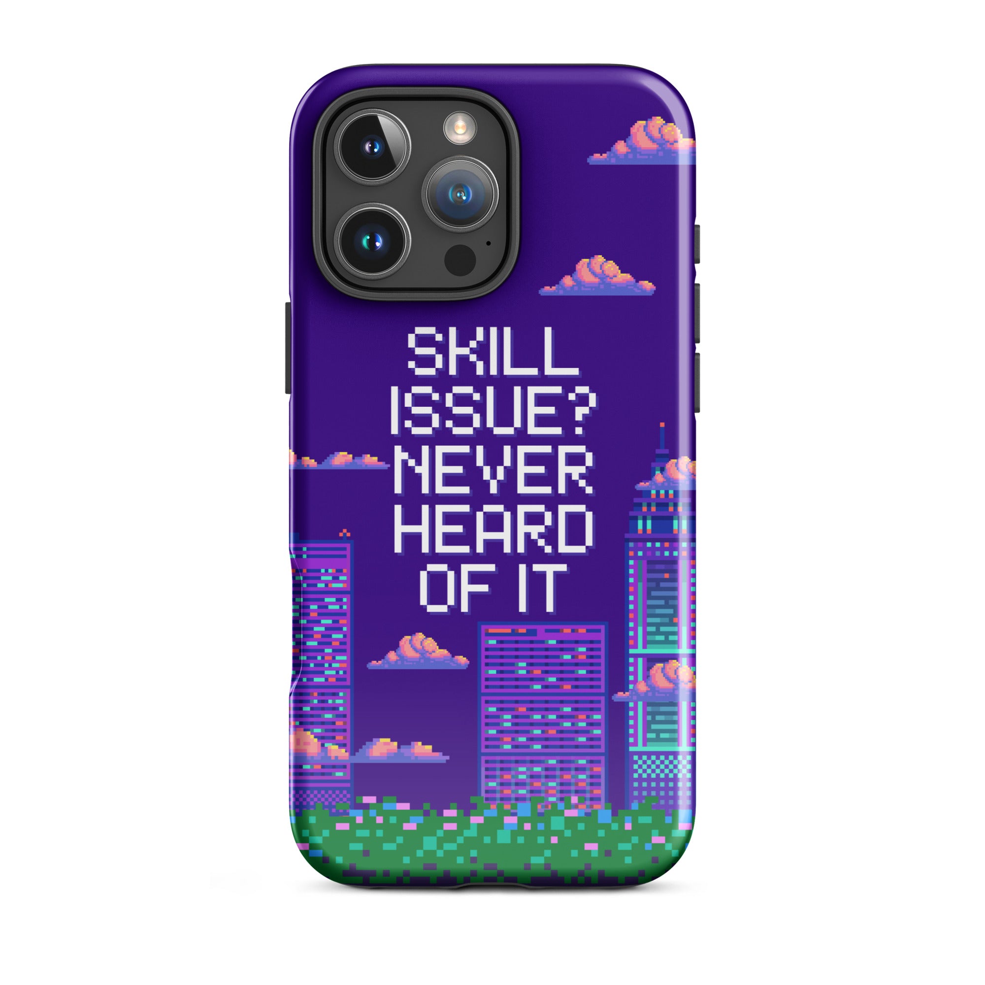 The Skill Issue? Never Heard of It Tough iPhone® Case captures the fearless spirit of gamers through bold pixel art skyscrapers, dreamy clouds, and a striking retro color palette. Its confident phrase is a statement for anyone who dominates the game. This vibrant design blends Gift + Memory. This gift is for gamers who thrive on skill and style, both in-game and in life.