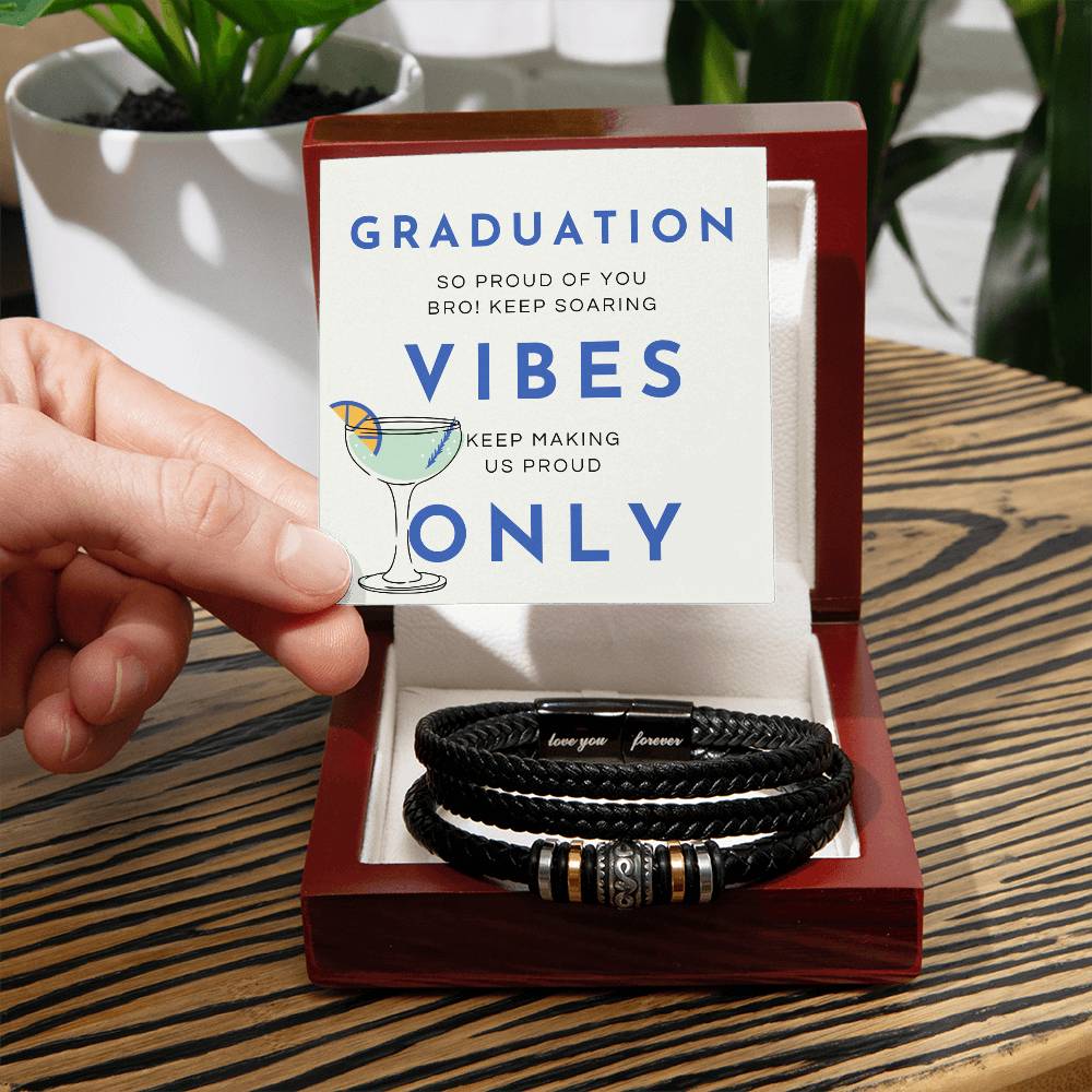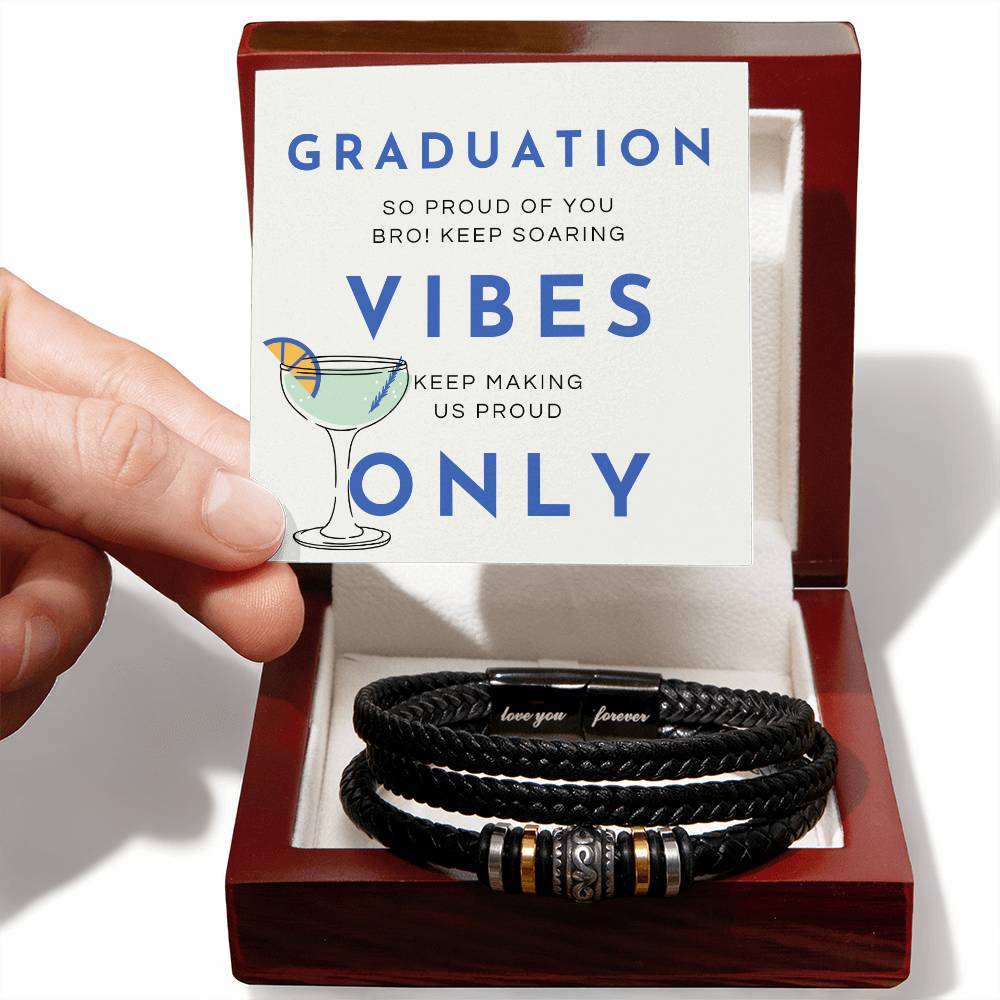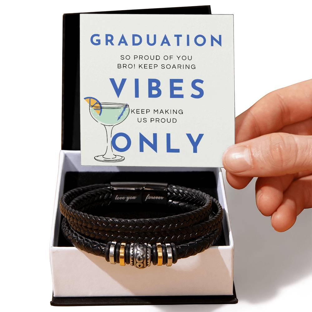 This design encapsulates the modern celebration of graduation with its bold typography and playful cocktail illustration. The phrases "GRADUATION," "VIBES," and "ONLY" create a trendy and celebratory atmosphere, while the personal message "SO PROUD OF YOU, BRO! KEEP SOARING" adds a touch of heartfelt encouragement. The cocktail glass, with its vibrant orange slice, symbolizes the joy and festivity of the occasion. The clean, minimalist style and vibrant blue accents create a visually striking piece that can complement any modern decor. This print serves as a contemporary celebration of achievement and pride, embodying the essence of Giftomory: every piece tells a story.