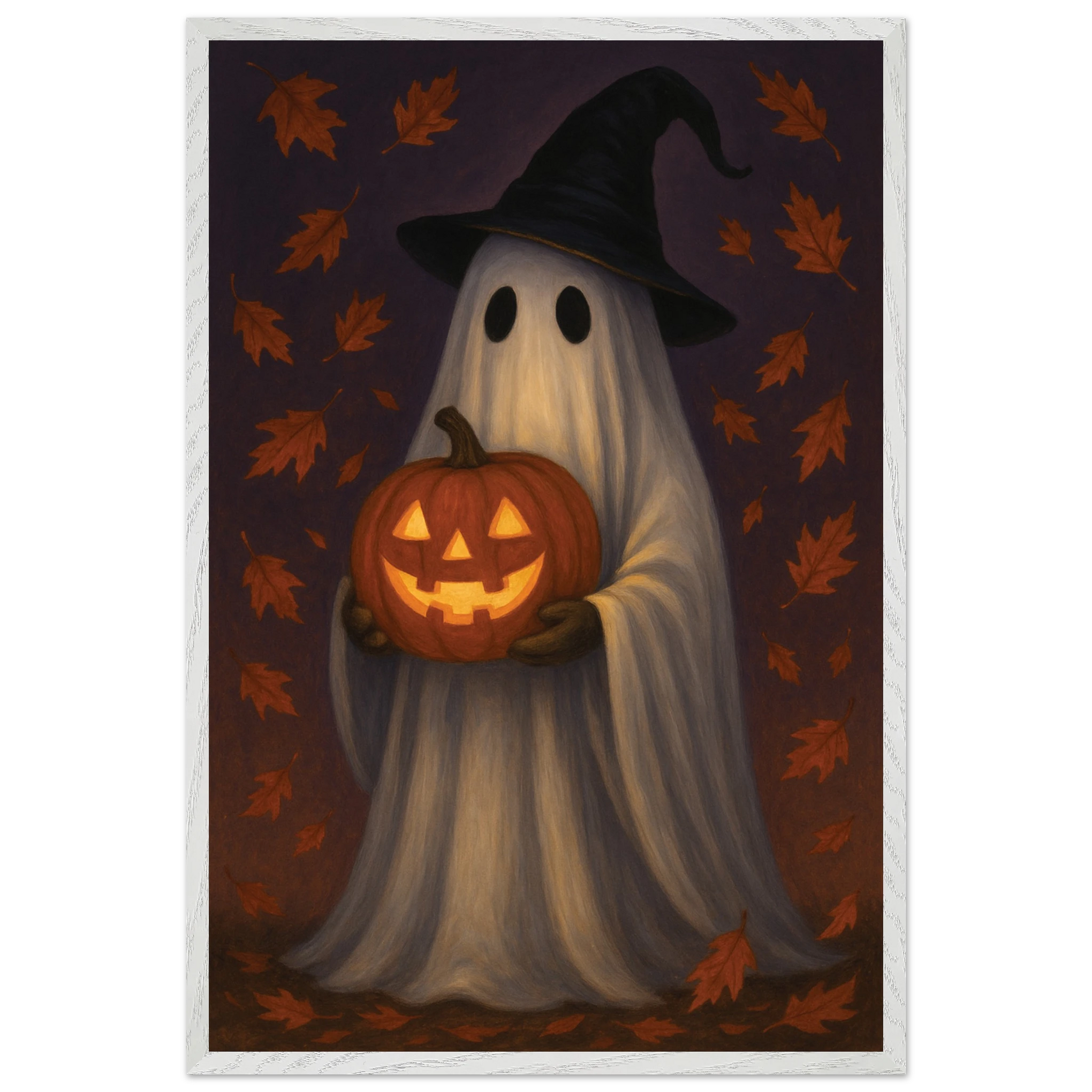 This gift is for those who embrace the playful magic of Halloween. The Ghost & Pumpkin Wooden Framed Poster captures a charming ghost dressed in a witch’s hat, holding a glowing jack-o’-lantern under falling autumn leaves. It radiates warmth, whimsy, and spooky delight, making it perfect seasonal décor that embodies Giftomory’s promise of Gift + Memory.