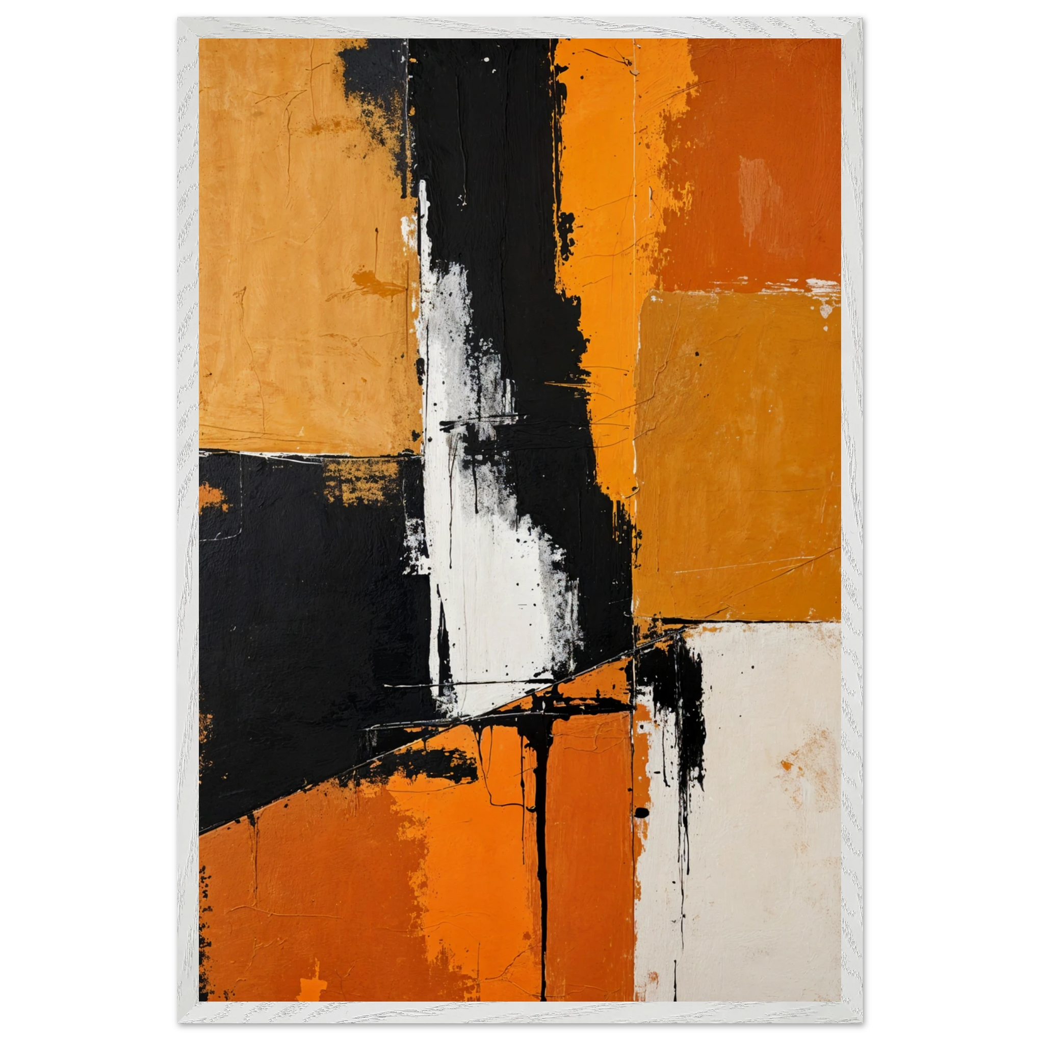 This bold Abstract Wooden Framed Poster blends vivid burnt orange, white, and deep black into a striking, emotive composition—perfect for gifting someone who values artistic expression and ambiance. The layered textures and geometric boldness radiate confidence and memory. This gift is for modern art lovers, design enthusiasts, or anyone seeking soulful, gallery-quality decor. Gift + Memory = Giftomory.