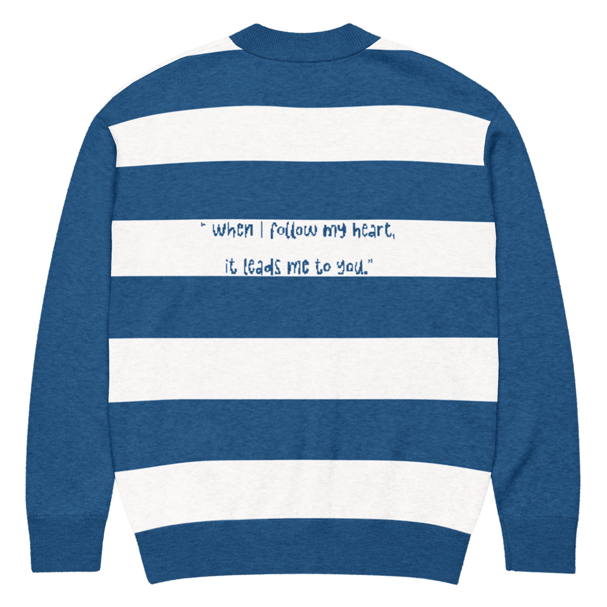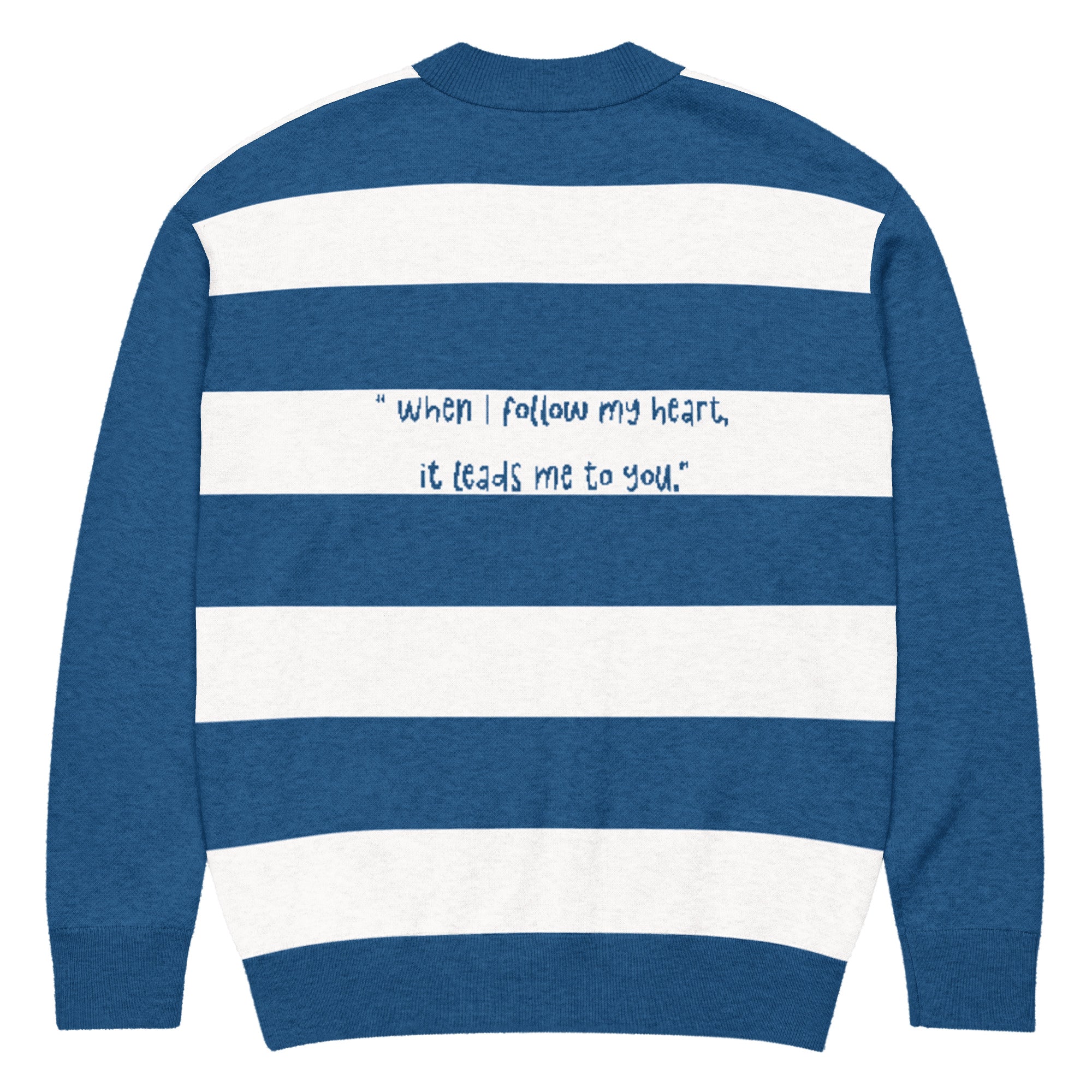 Express your affection with the Gift + Memory cardigan, designed with minimalist green and black stripes and a tender "heart you" message. A simple yet powerful expression of love—perfect for gifting someone who means everything to you.