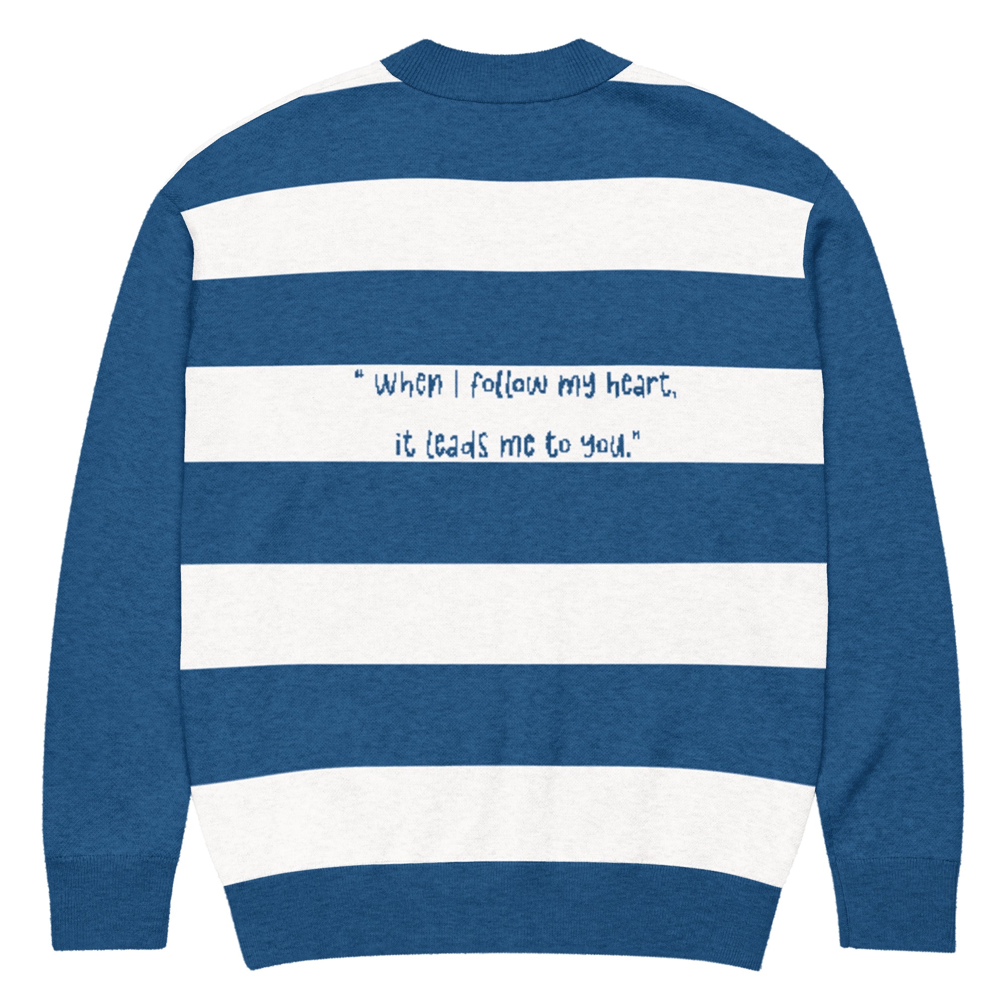 The Heart You – Gift + Memory Cardigan speaks volumes with just a few words. Set against classic black and forest green stripes, the delicate handwritten "heart you" phrase captures intimacy, warmth, and sincerity. This gift is for the person you love deeply—the one who understands the quiet beauty of simplicity. Whether it’s a romantic gesture or a token of appreciation, this piece brings warmth and subtle elegance to everyday wear.