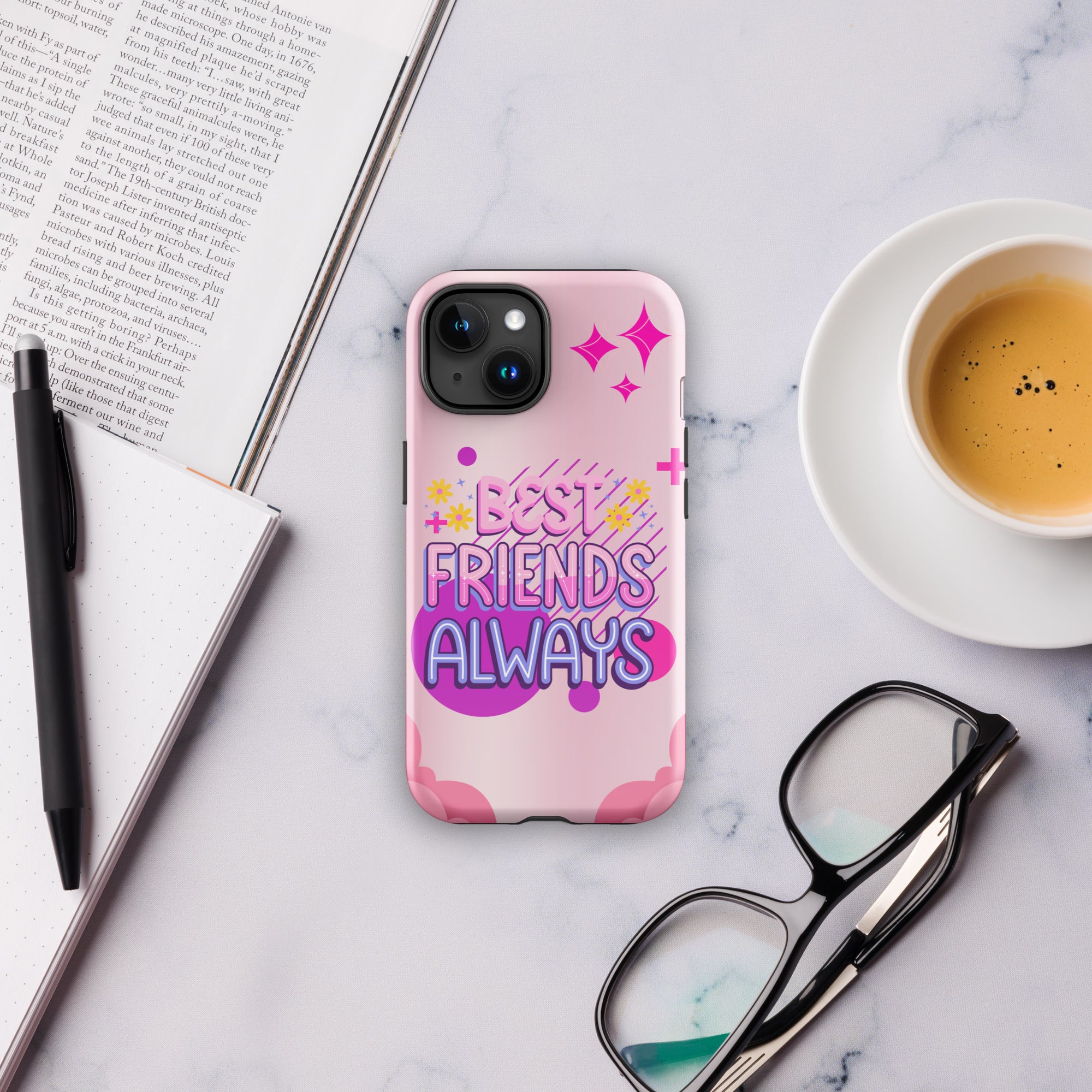The Best Friends Are Always Tough iPhone® Case celebrates the unbreakable bond between besties with lively pink gradients, whimsical cloud shapes, and cheerful floral accents. The bold lettering beams with positivity, making it an unforgettable keepsake. Perfect for birthdays, friendship milestones, or just because, this design embodies Gift + Memory. This gift is for best friends who cherish love, laughter, and loyalty.